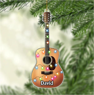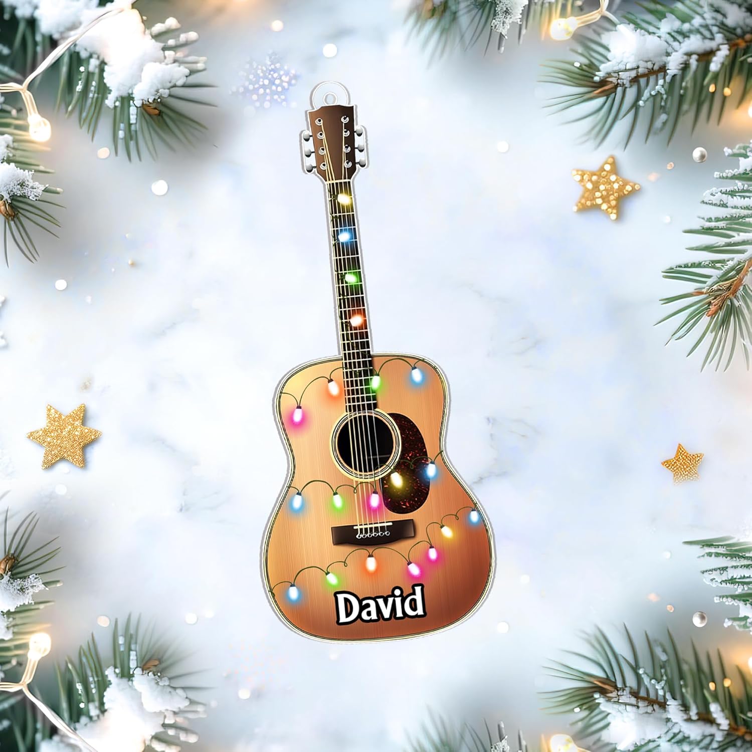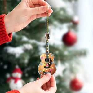 Acoustic Guitar Cut Acrylic Ornament – Personalized Christmas Gift for Guitarist, Music Teacher, or Songwriter