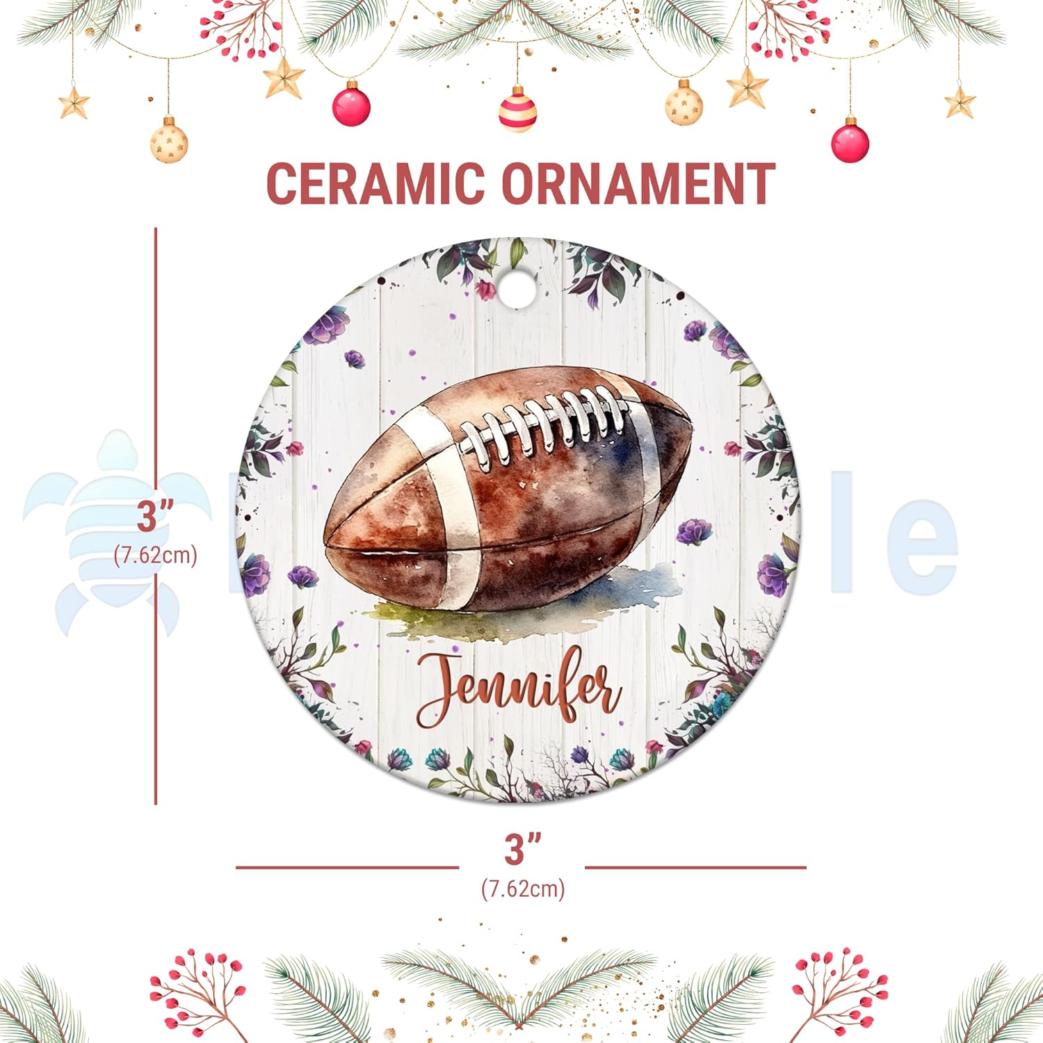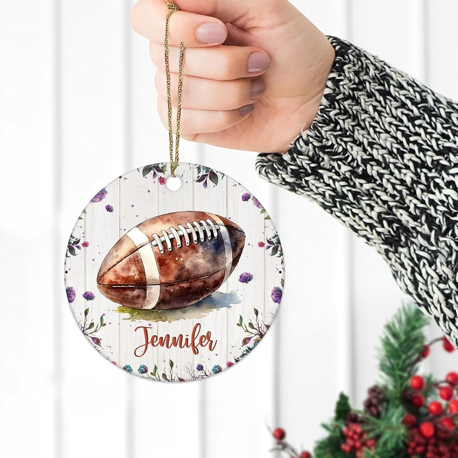 Celebrate the thrill of football with this holiday design featuring classic ball detail and floral accents. It’s bold and festive, perfect for sports enthusiasts. Crafted from premium ceramic, 3 x 3 inches, with a vivid finish that highlights every line. Double-sided full-color printing ensures durability and vibrancy. Lightweight yet strong, it hangs easily with the gold cord. Perfect for holiday décor on trees, wreaths, or table settings. More than decoration, it shares a story of teamwork and passion. A thoughtful gift for football fans and families. Ideal for Christmas, birthdays, or housewarming events. Personalized with a name, it becomes a keepsake of both sport and memory. Add this football ceramic keepsake to your cart today and celebrate the season.