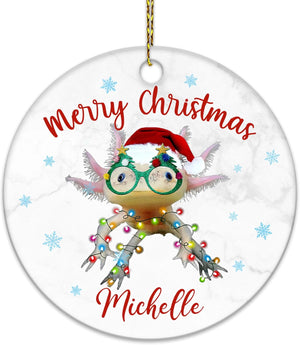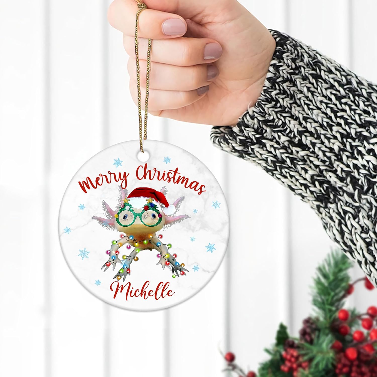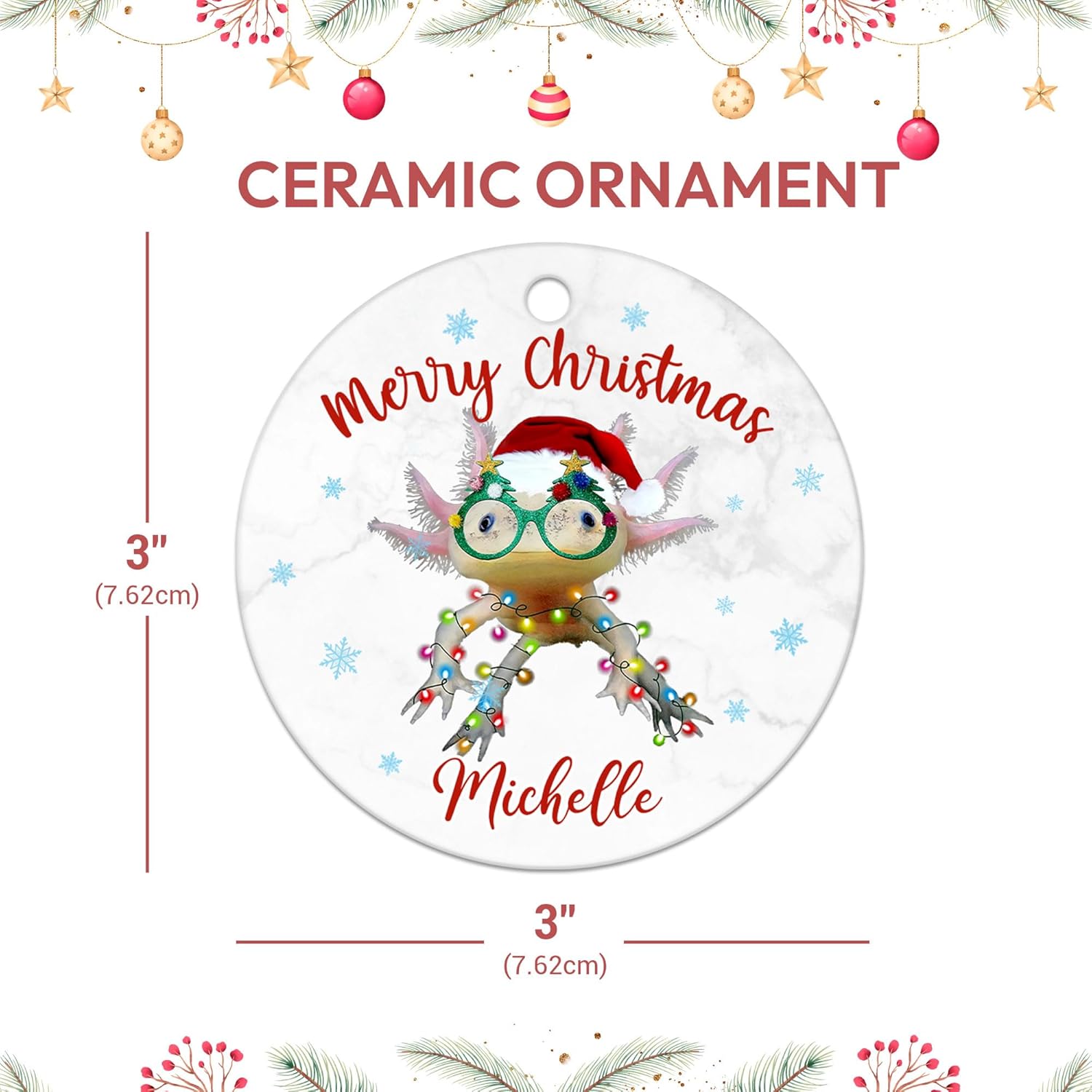 Axolotl Christmas Ceramic Ornament  Personalized Cute Animal Lover Holiday Keepsake  Fun Xmas Tree Decoration for Kids