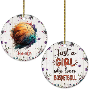 Basketball Lover Ceramic Christmas Ornament  Just A Girl Who Loves Basketball Personalized Round Decoration  Sport Gift Keepsake