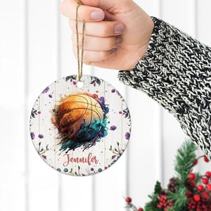 Celebrate passion for the game with this basketball-themed ornament featuring bold orange tones and artistic details. Its floral accents and handwritten phrase add charm and personality. Measuring 3 x 3 inches, it’s crafted from premium ceramic with a vivid finish that makes every color pop. Printed double-sided in full color, the design stays bright and durable year after year. Lightweight yet sturdy, it hangs securely using the included gold cord. Perfect for Christmas trees, wreaths, or sports-themed displays. Beyond decoration, it symbolizes teamwork, dedication, and love for the game. A thoughtful gift for basketball fans, teammates, and supportive parents. Suitable for Christmas, housewarmings, or anniversaries. Personalization with a name turns it into a lasting keepsake. Order today and add sporty energy to your holiday décor.