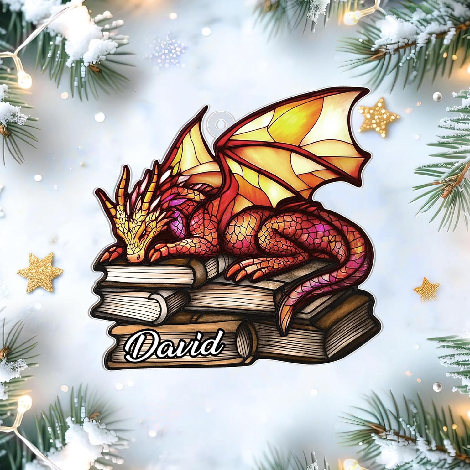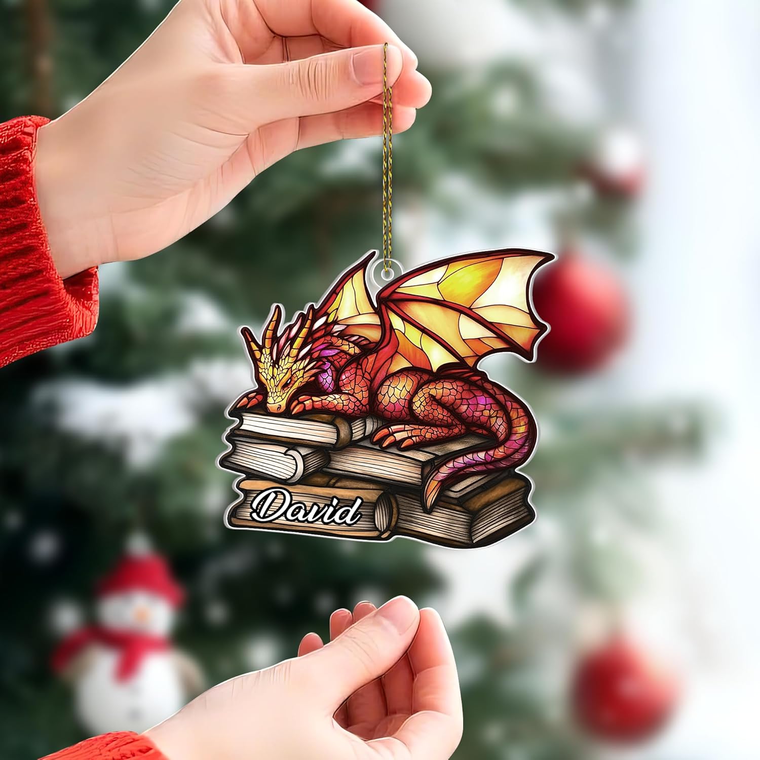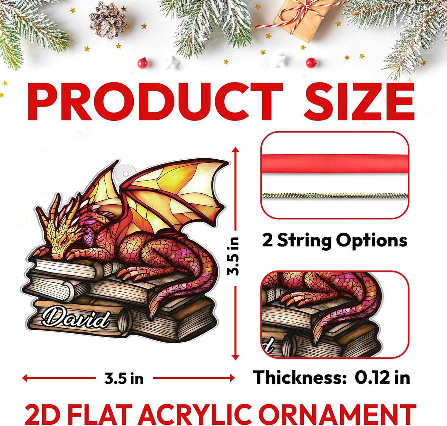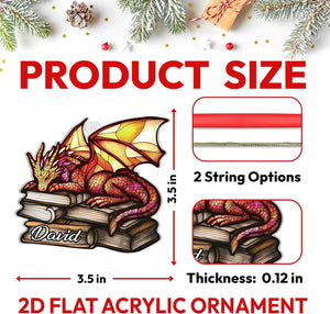 Book Dragon Cut Acrylic Ornament – Personalized Christmas Gift for Bookworm, Reader, or Fantasy Lover – Unique Tree Keepsake