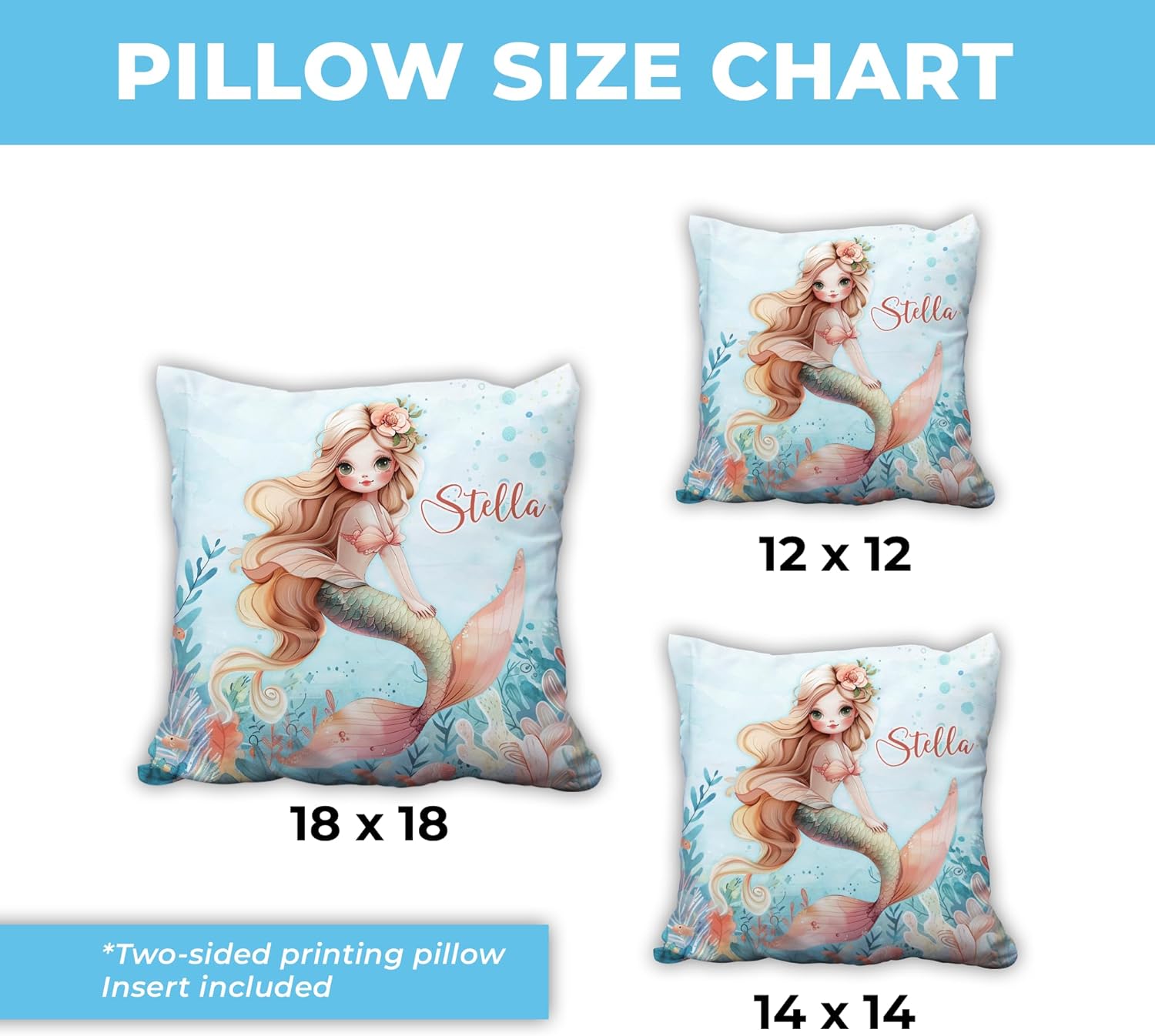 Mermaid Cartoon Pattern - Personalized Pillow (Insert Included)