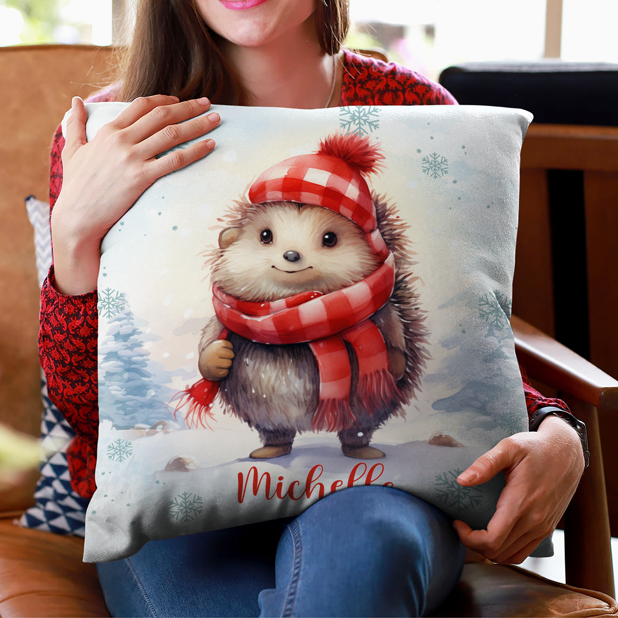 Home Hedgehog Snow Pattern - Personalized Pillow (Insert Included)