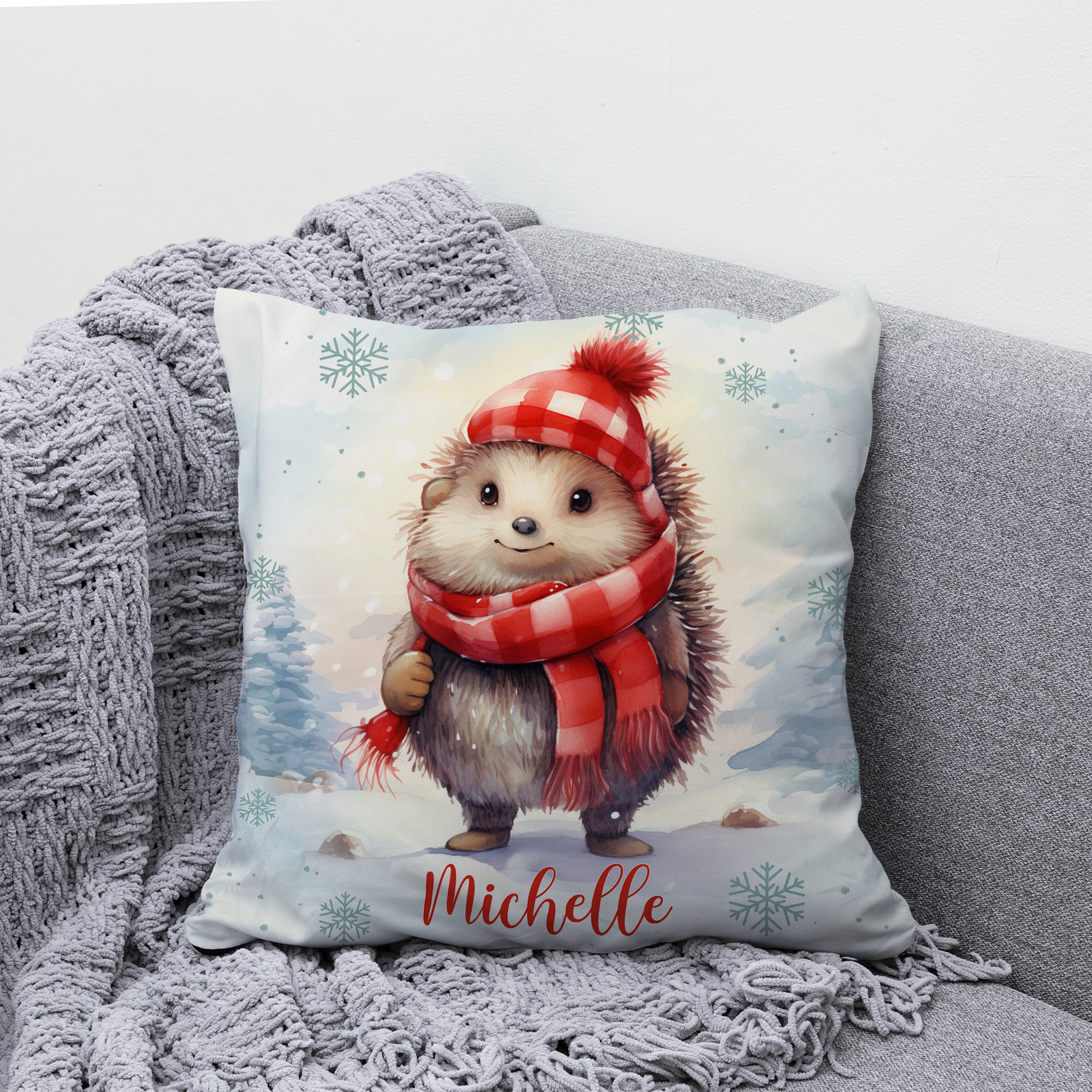 Hedgehog Snow Pattern - Personalized Pillow (Insert Included)