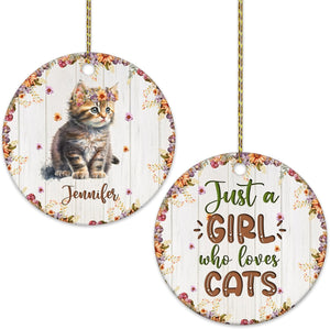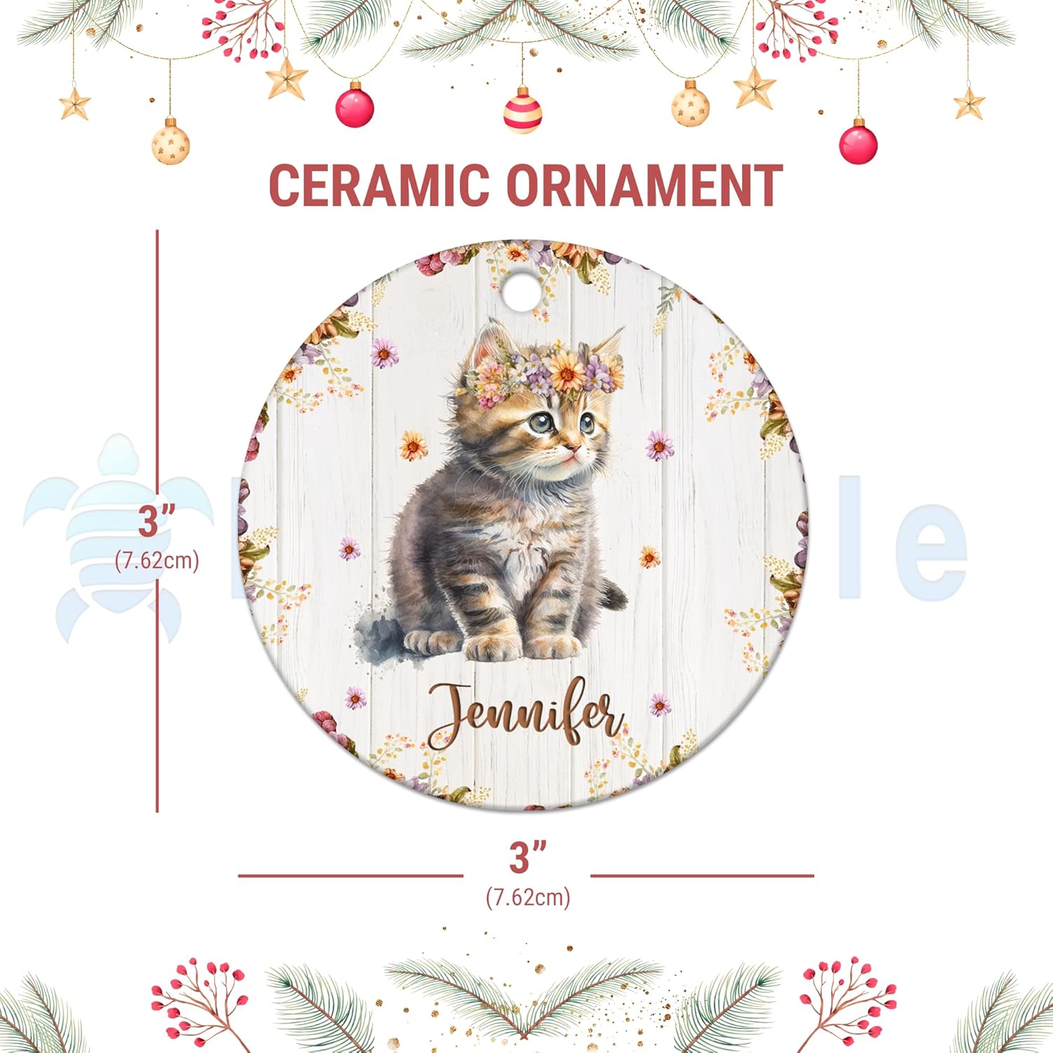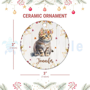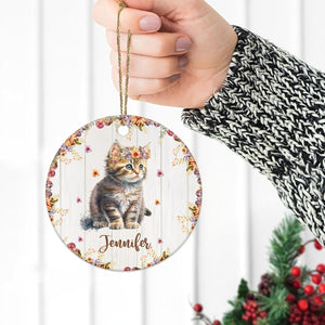 Featuring an adorable kitten with floral accents, this ceramic ornament radiates cuteness and festive cheer. The design captures the joy and playfulness of cats, making it a perfect holiday accessory for feline fans. Made from high-quality ceramic, it offers durability and a polished surface with crisp, vivid detailing. The double-sided print ensures vibrant artwork is displayed all around. Its lightweight build makes it easy to hang without hassle. Beyond decoration, it symbolizes love for pets and the comfort they bring. Great for cat moms, friends, or family who cherish furry companions. Suitable for Christmas, birthdays, or housewarming gifts, this ornament carries sentimental meaning for every recipient. Adding personalization turns it into a cherished keepsake for years to come. It’s not just décor—it’s a celebration of the bond between humans and their cats. Add this cat-themed charm to your collection today.