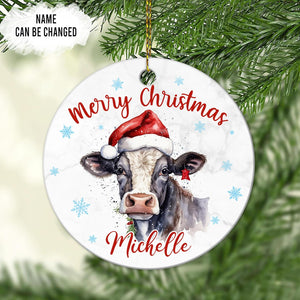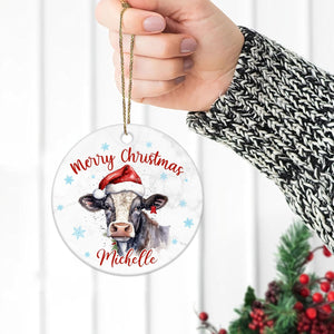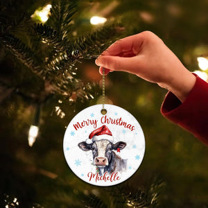 Cow Christmas Ceramic Ornament Personalized Farm Animal Holiday Decoration Keepsake Cute Custom Gift for Women & Kids
