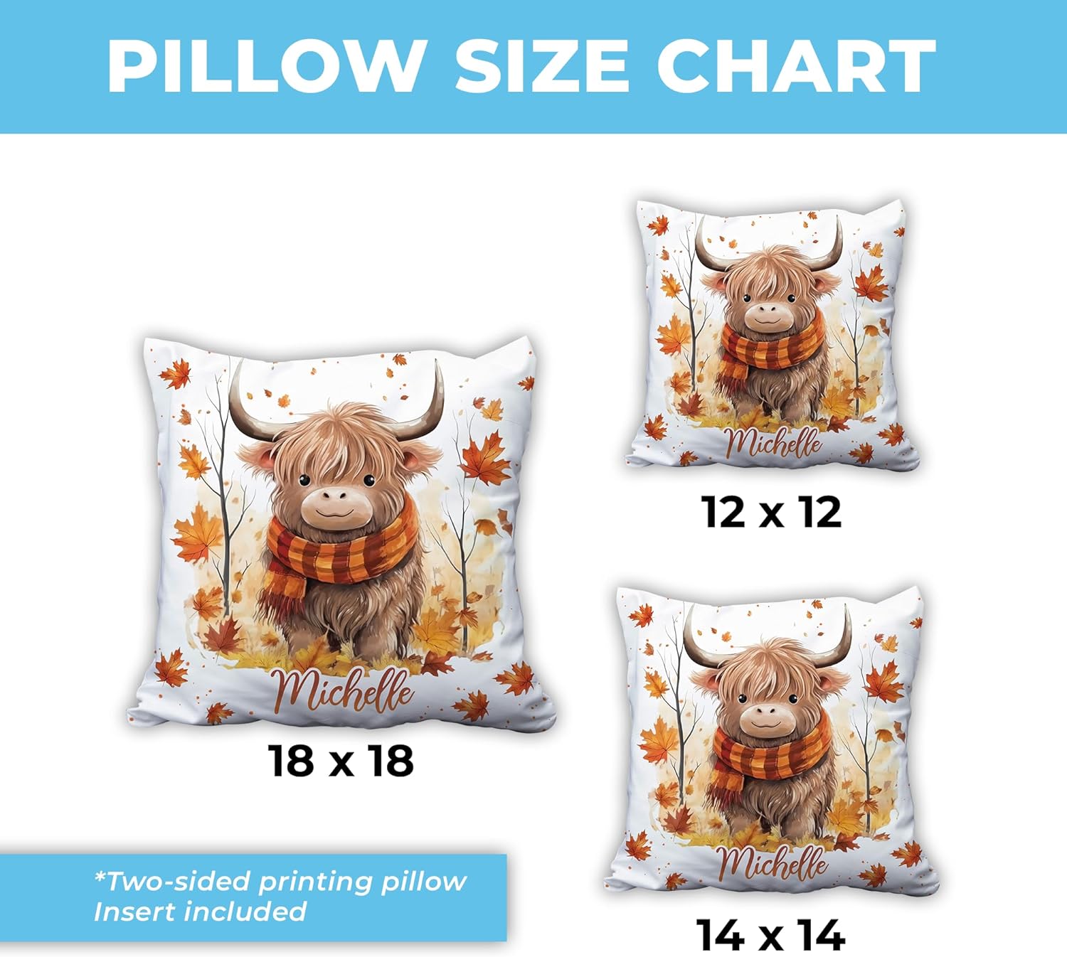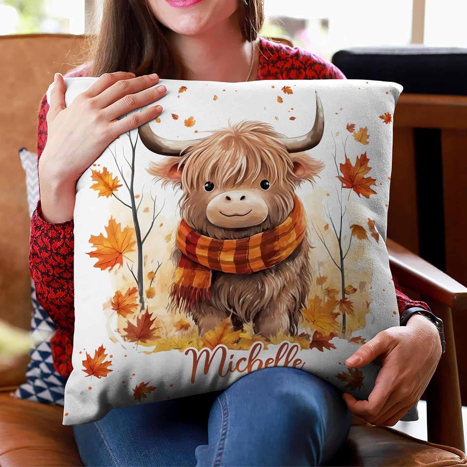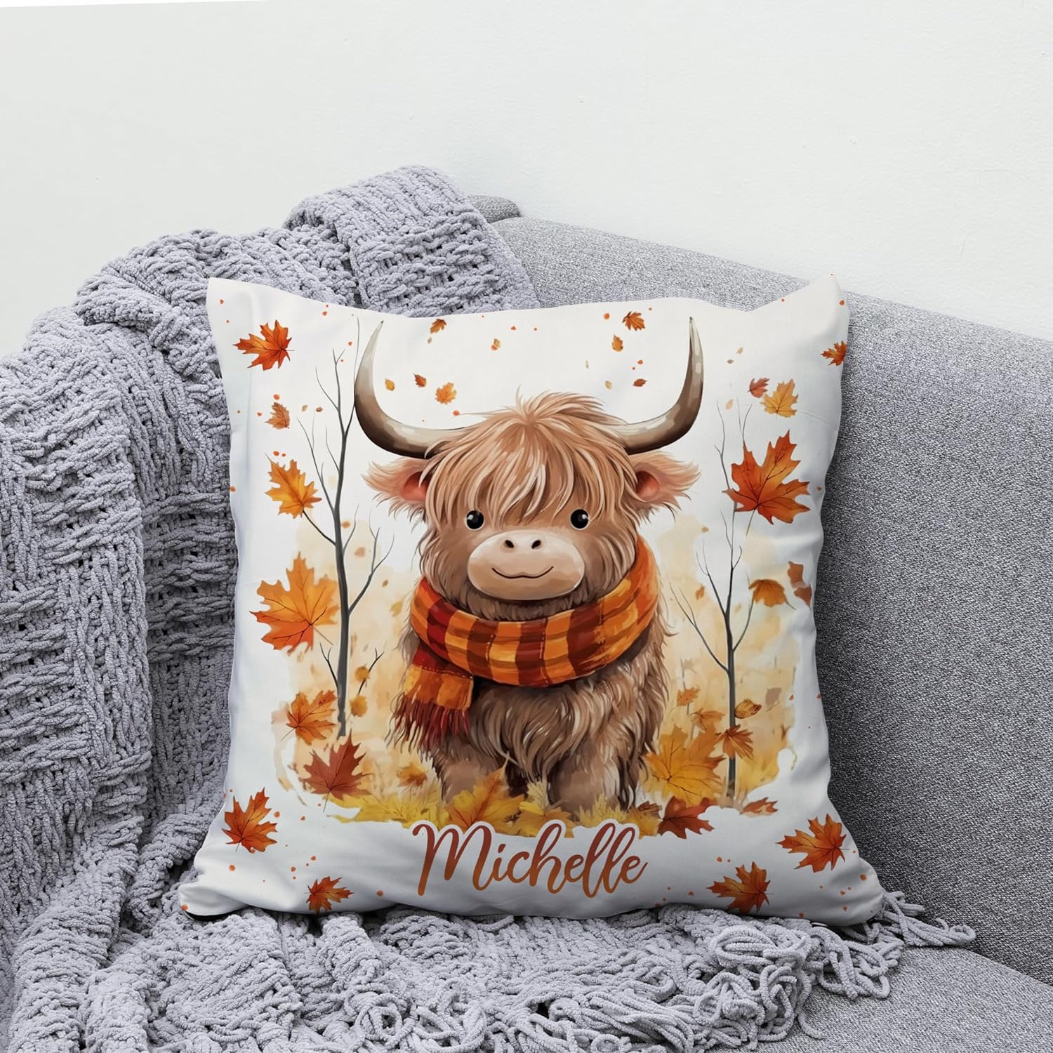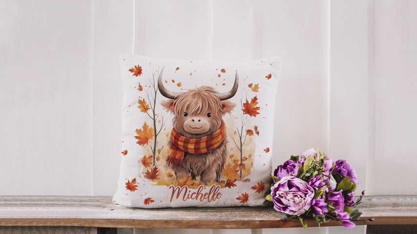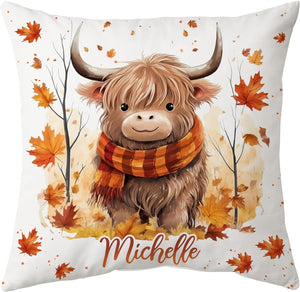 Highland Cow Maple Leaves - Personalized Pillow (Insert Included)