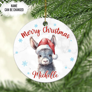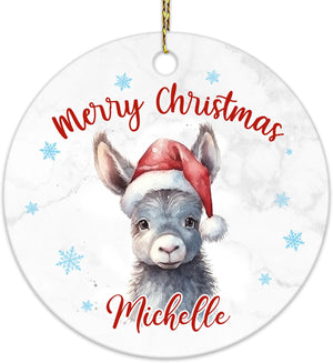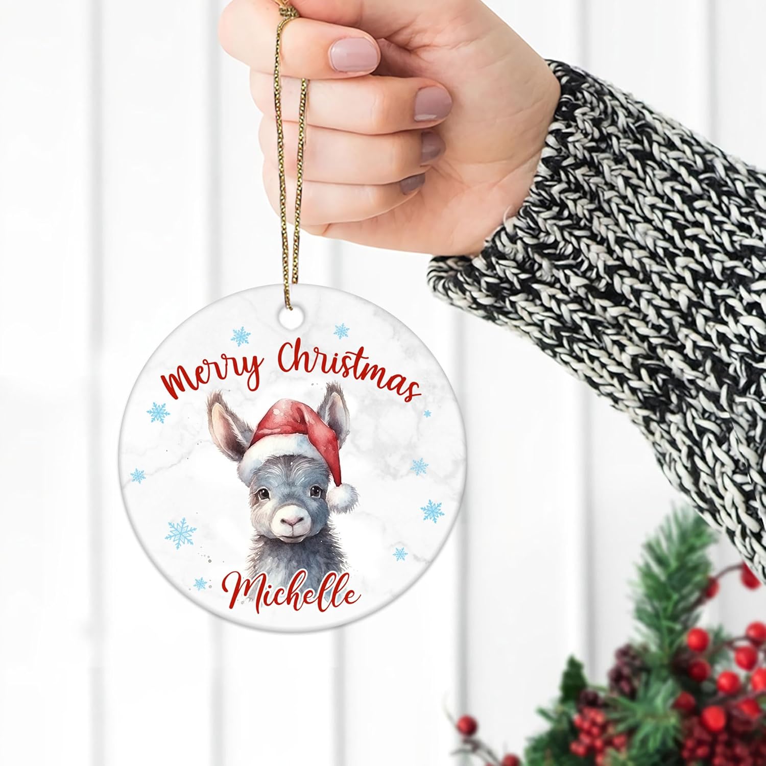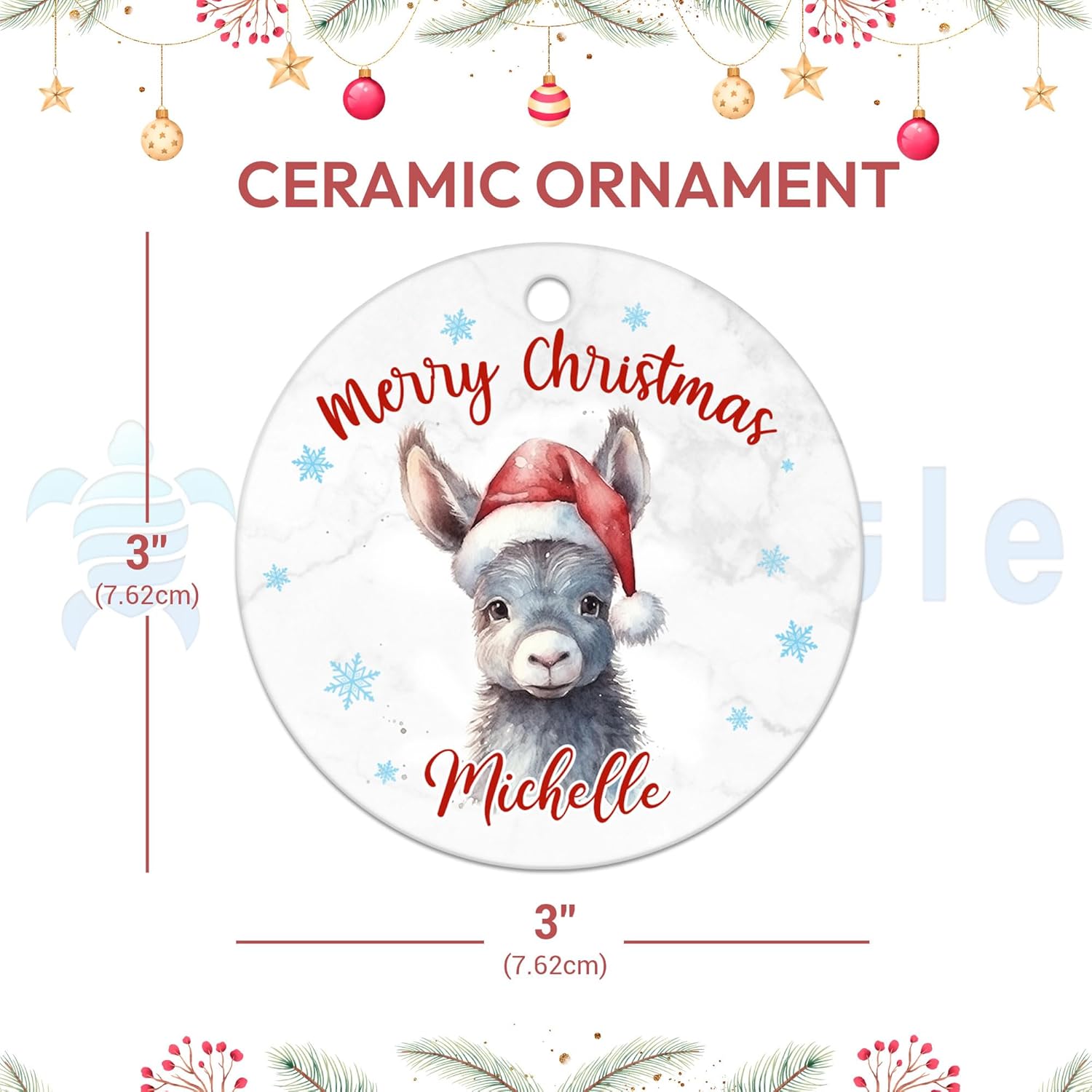 Donkey Christmas Ceramic Ornament  Personalized Holiday Decoration with Custom Name  Unique Animal Lover Gift Keepsake