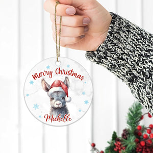 Donkey Christmas Ceramic Ornament Personalized Holiday Decoration with Custom Name Unique Animal Lover Gift Keepsake