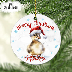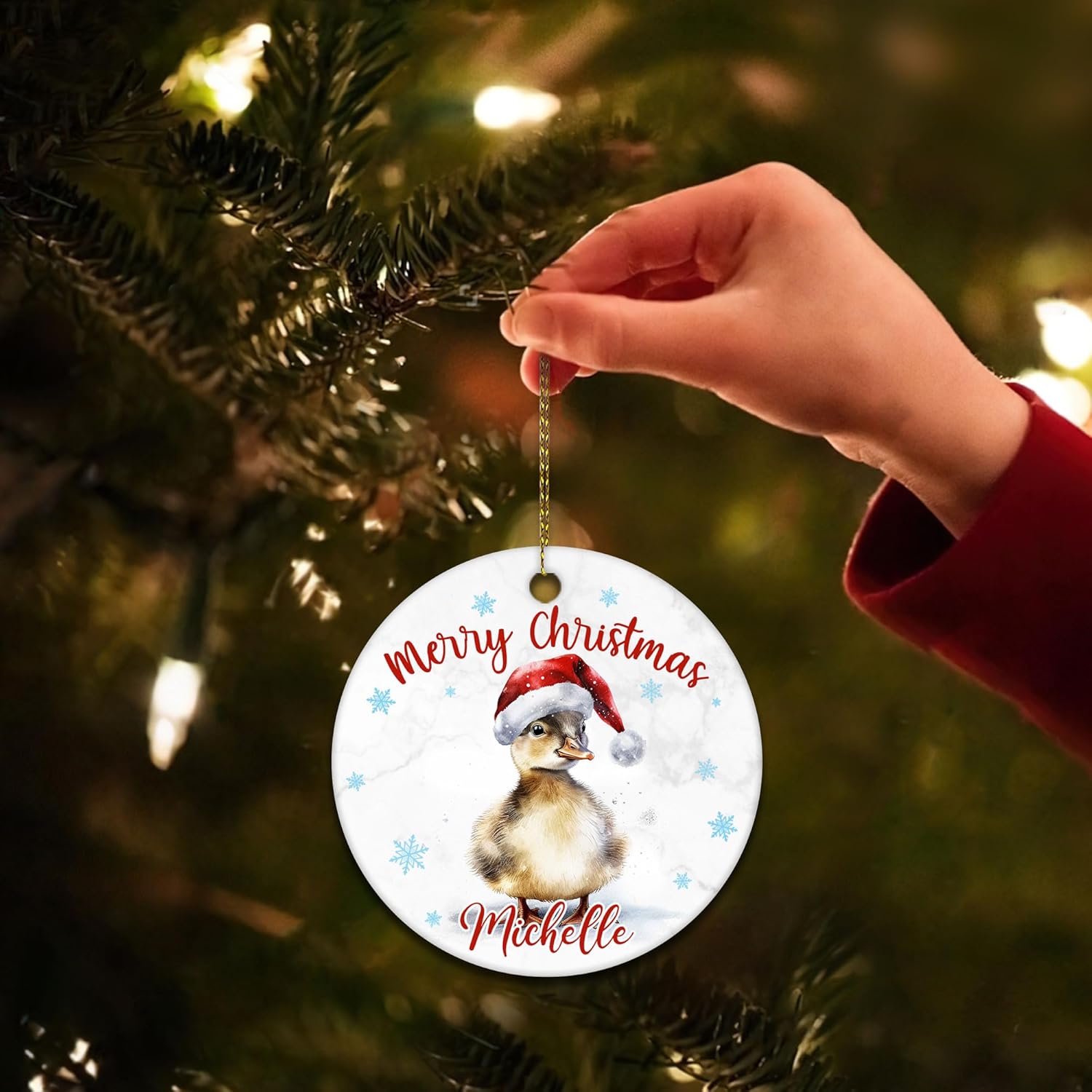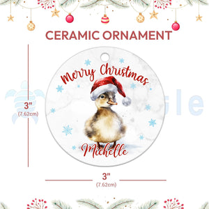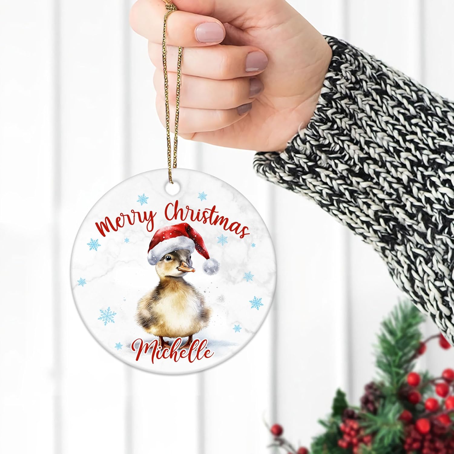 Duck Christmas Ceramic Ornament  Personalized Holiday Decoration with Santa Hat  Cute Gift Keepsake for Animal Lovers