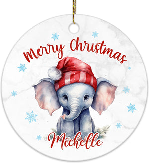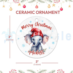 Elephant Christmas Ceramic Ornament  Personalized Animal Holiday Decoration Keepsake  Cute Custom Gift for Women & Kids