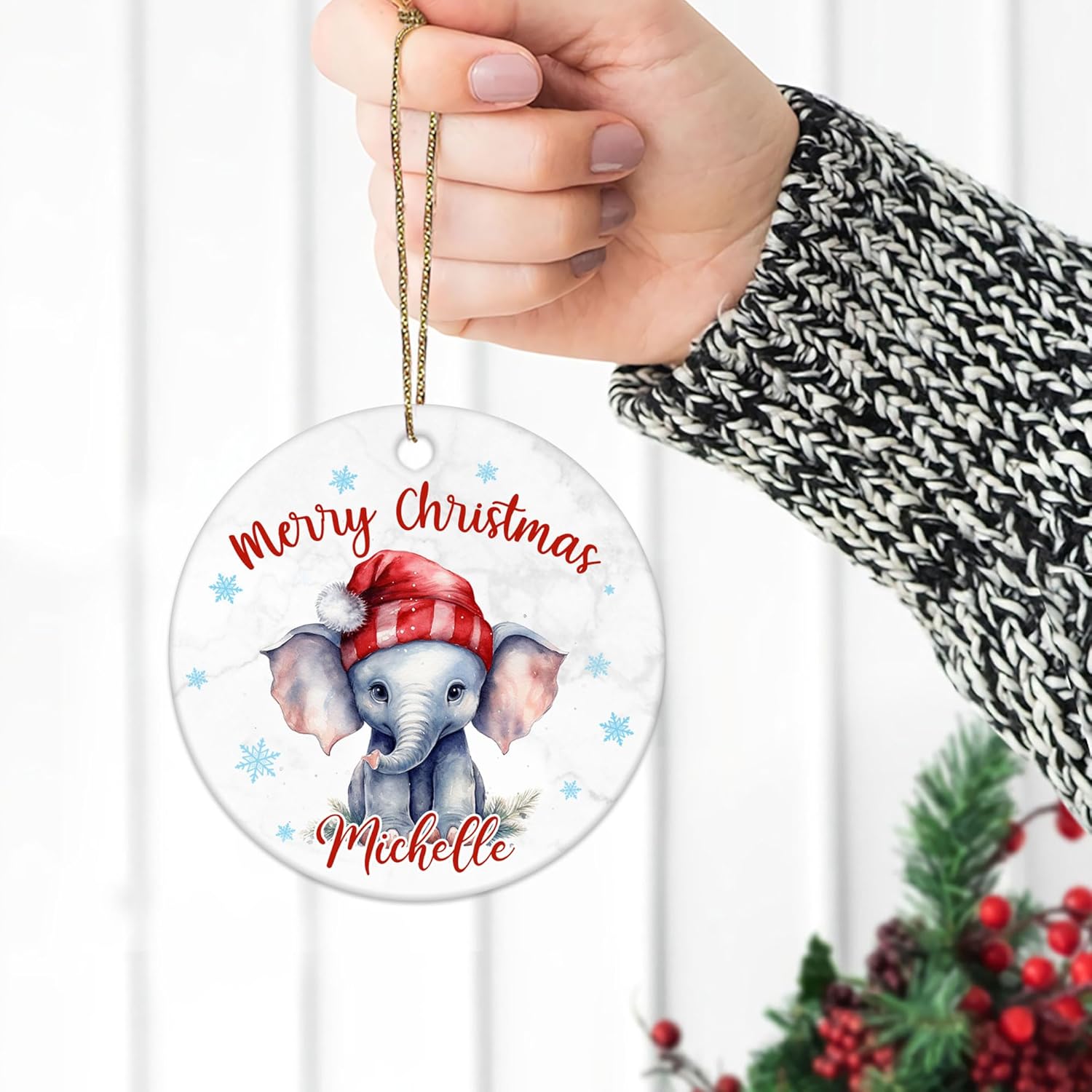 Elephant Christmas Ceramic Ornament Personalized Animal Holiday Decoration Keepsake Cute Custom Gift for Women & Kids