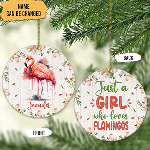 Flamingo Ceramic Ornament  Personalized Just A Girl Who Loves Flamingos Holiday Decoration  Tropical Gift Keepsake for Women