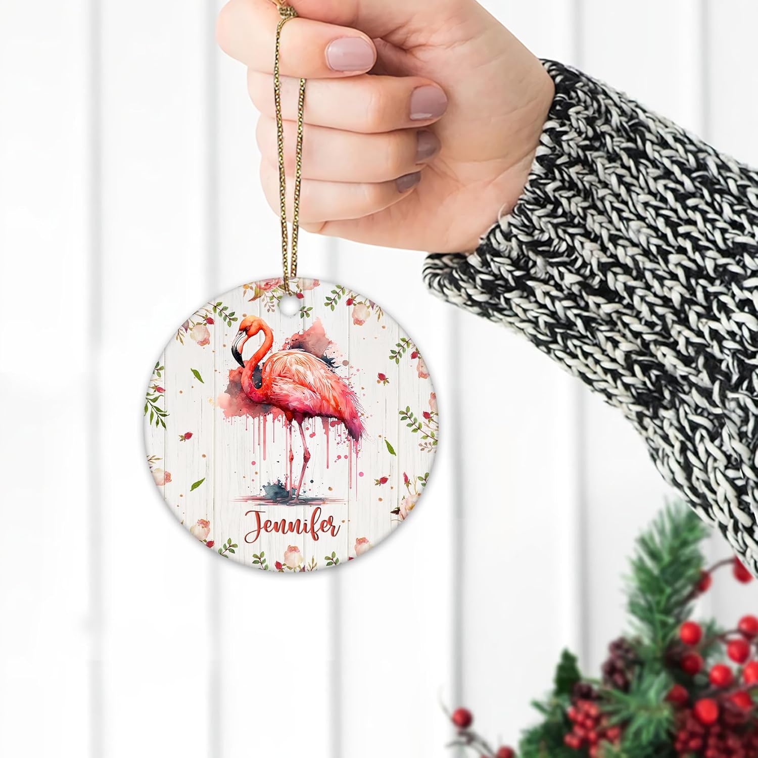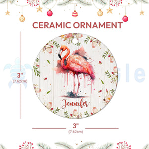 This stunning ceramic ornament highlights a flamingo in a watercolor style, standing gracefully among floral accents. The vibrant pink tones bring tropical elegance to your festive décor. Crafted from high-quality ceramic, it delivers bright full-color printing on both sides that resists wear and fading. Its lightweight yet sturdy build ensures it hangs beautifully without bending branches. A radiant finish enhances every detail, making the flamingo’s feathers shine under Christmas lights. Complete with a gold cord, it’s ready to hang instantly. Ideal for tropical-themed trees, beach houses, or flamingo enthusiasts’ collections. Add a pop of color and joy to your seasonal décor. Perfect for gifting flamingo lovers on Christmas, birthdays, or tropical-themed celebrations. Personalized name printing adds unique sentiment to each piece. This keepsake creates lasting holiday memories that will be cherished year after year. Bring beachside spirit to your Christmas tree this season. Add this personalized flamingo ornament to your cart now.