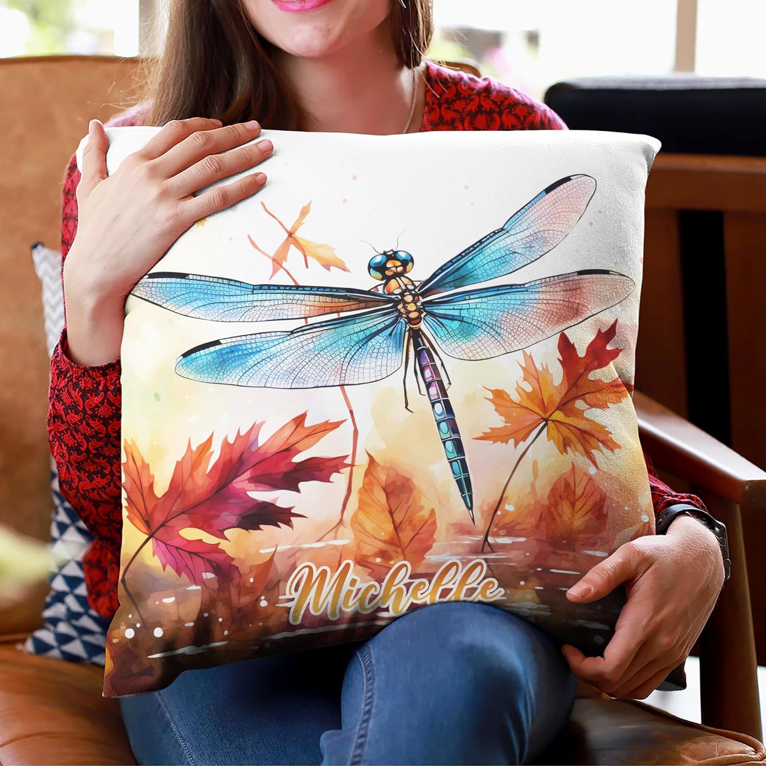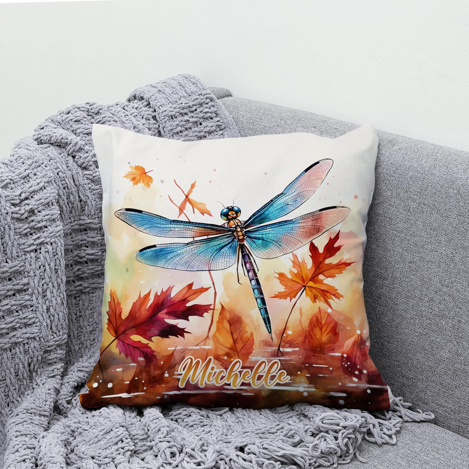 Dragonfly Maple Leaves - Personalized Pillow (Insert Included)