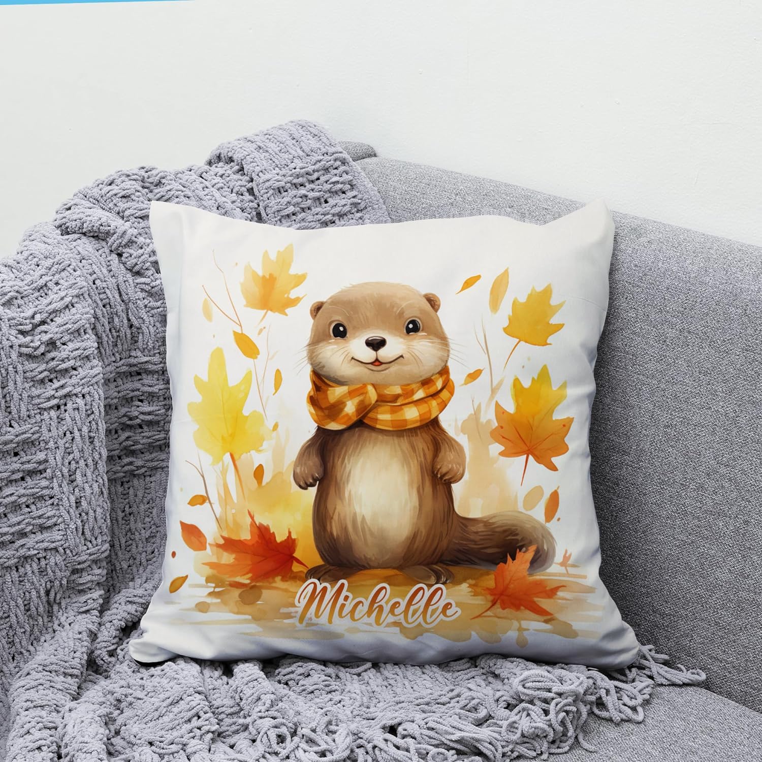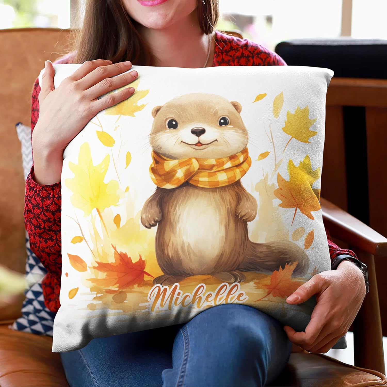 Otter Maple Leaves - Personalized Pillow (Insert Included)