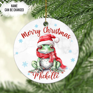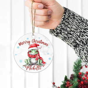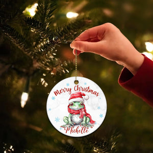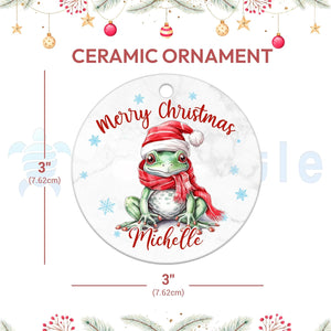 Frog Christmas Ceramic Ornament  Personalized Cute Animal Lover Holiday Tree Keepsake  Fun Xmas Gift for Kids Women