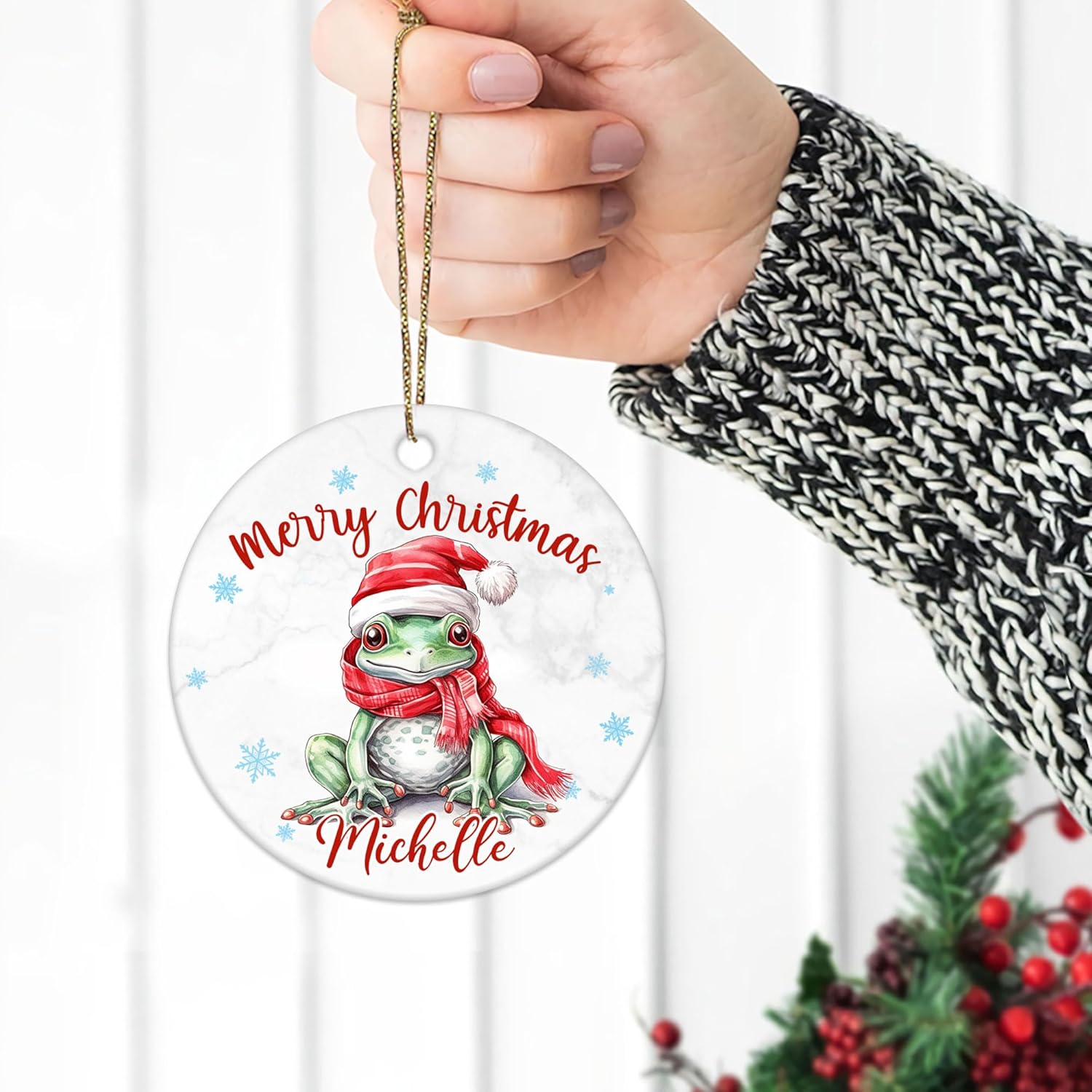 Frog Christmas Ceramic Ornament Personalized Cute Animal Lover Holiday Tree Keepsake Fun Xmas Gift for Kids Women