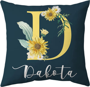 Initial Name Sunflower - Personalized Pillow (Insert Included)