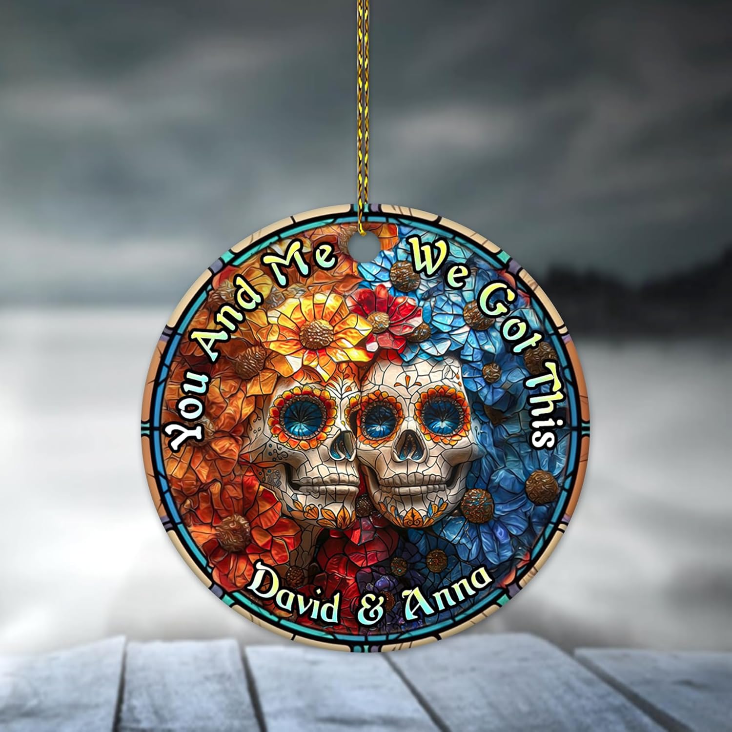Gothic Skull Couple Ceramic Ornament  Personalized Anniversary or Wedding Keepsake  Unique Gift for Husband and Wife