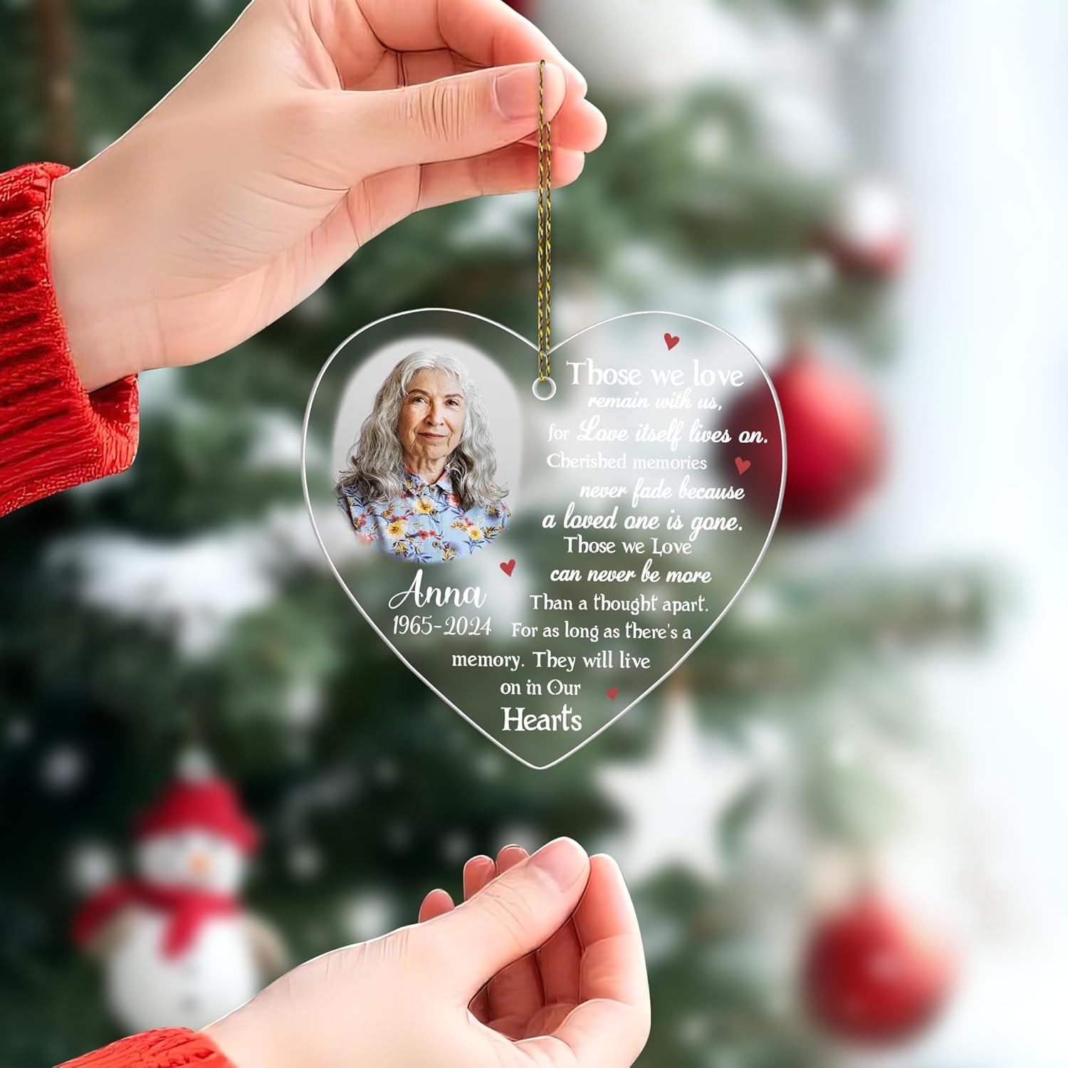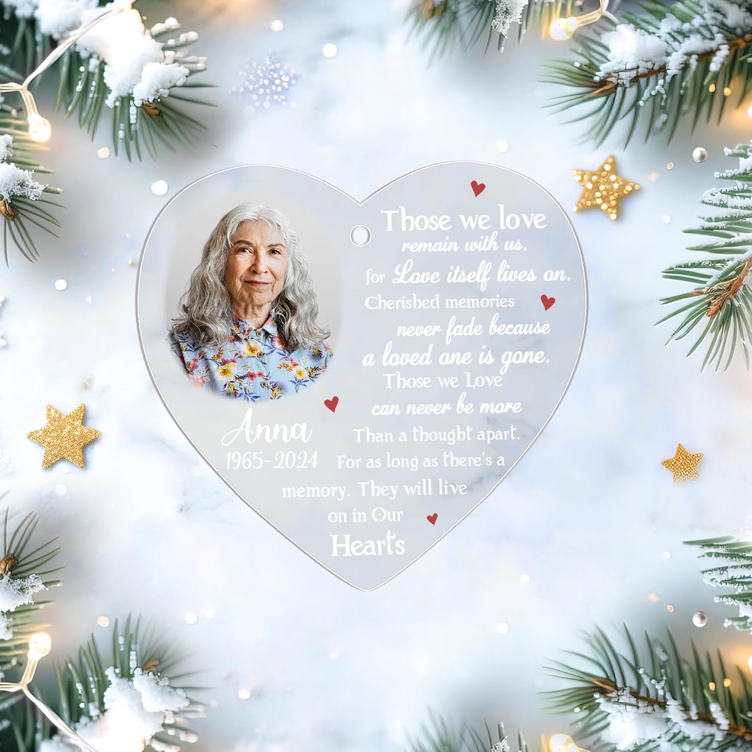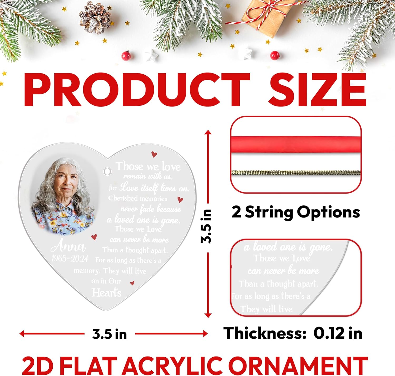 Heart Memorial Personalized Acrylic Ornament – Custom Photo Keepsake – Loving Memory Christmas Gift for Family and Friends