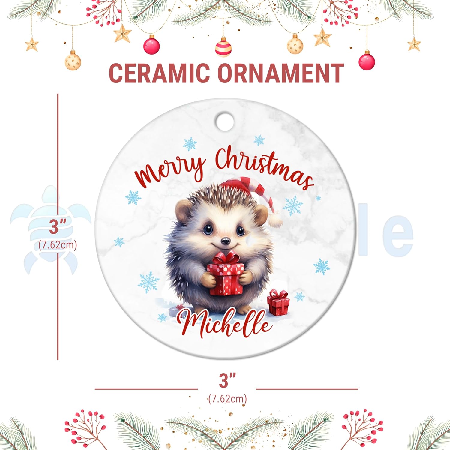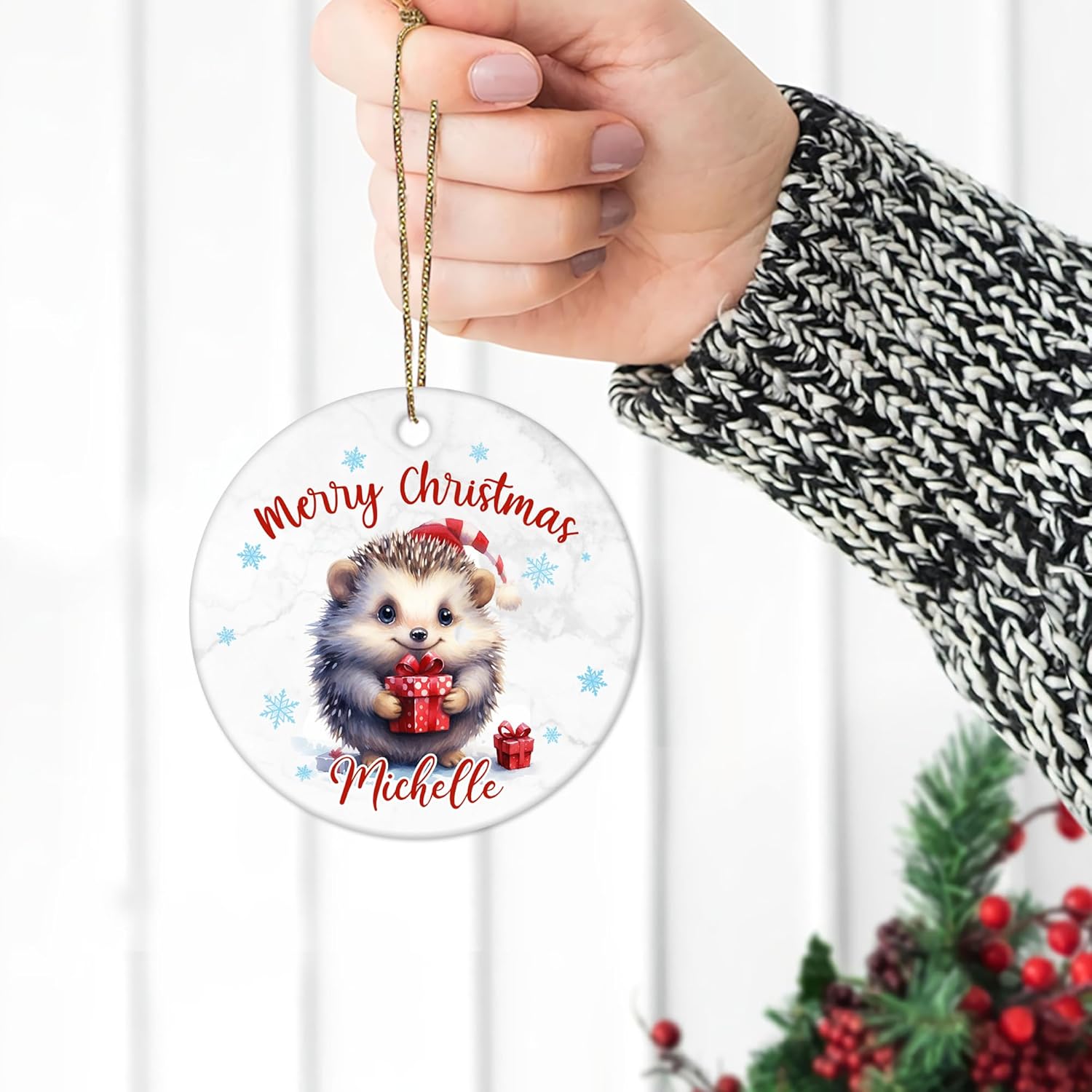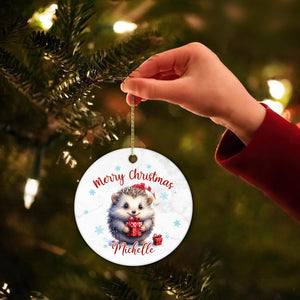 Hedgehog Christmas Ceramic Ornament  Personalized Cute Animal Lover Holiday Tree Decoration  Unique Keepsake Gift for Kids Women