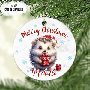Hedgehog Christmas Ceramic Ornament Personalized Cute Animal Lover Holiday Tree Decoration Unique Keepsake Gift for Kids Women