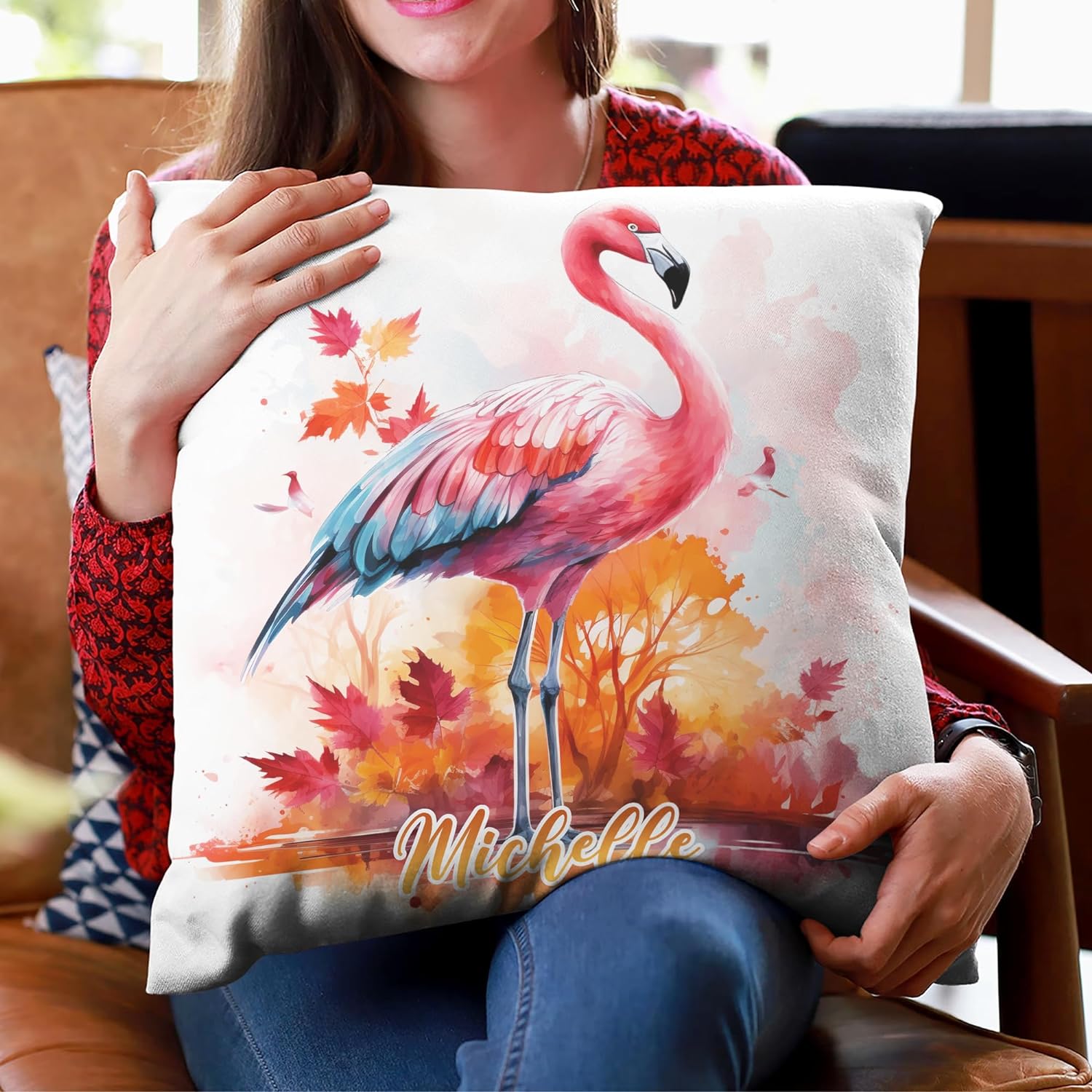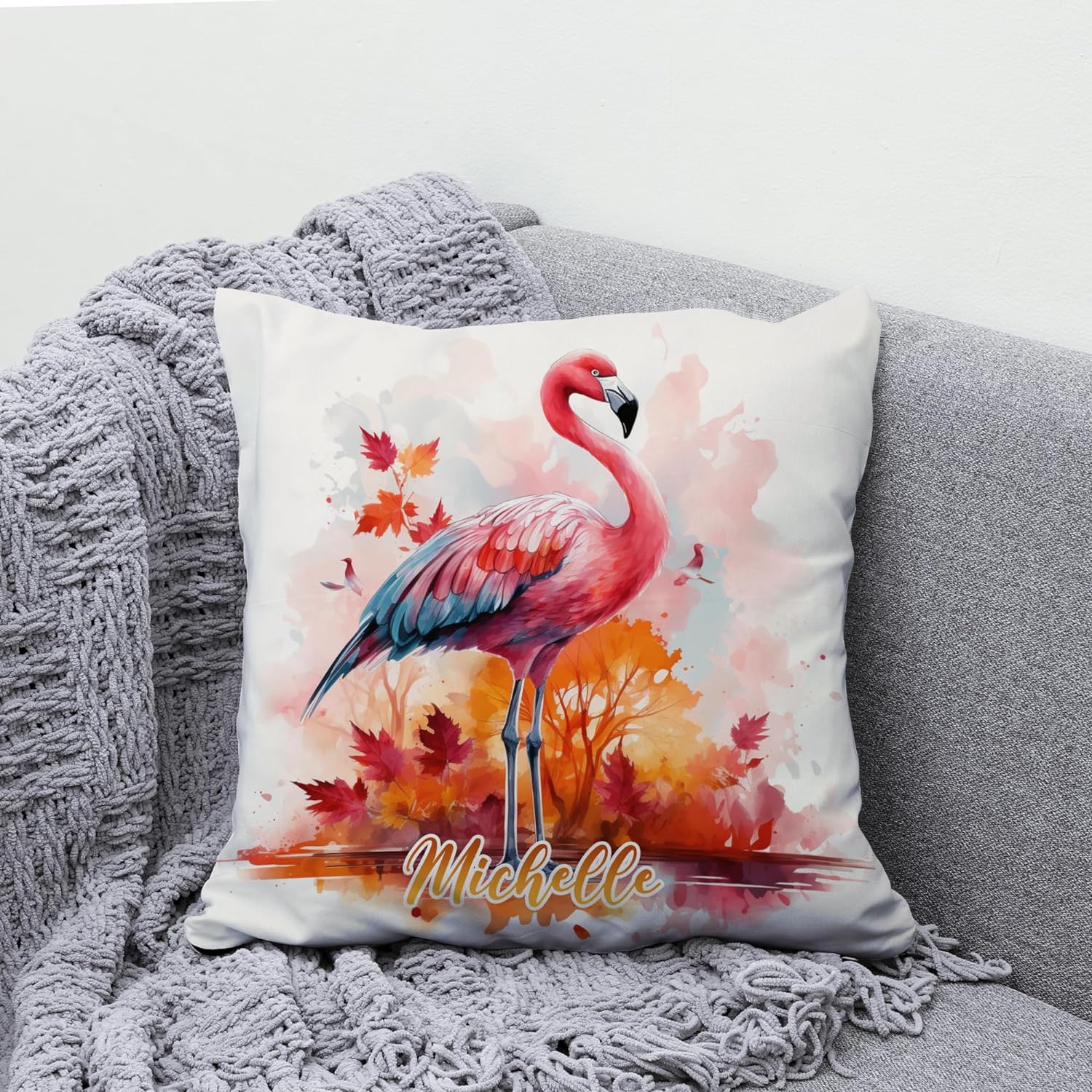 Flamingo Maple Leaves - Personalized Pillow (Insert Included)