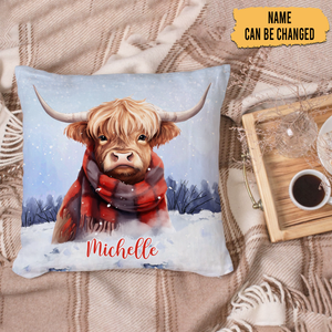 Home Highland Cow Snow Pattern - Personalized Pillow(Insert Included)