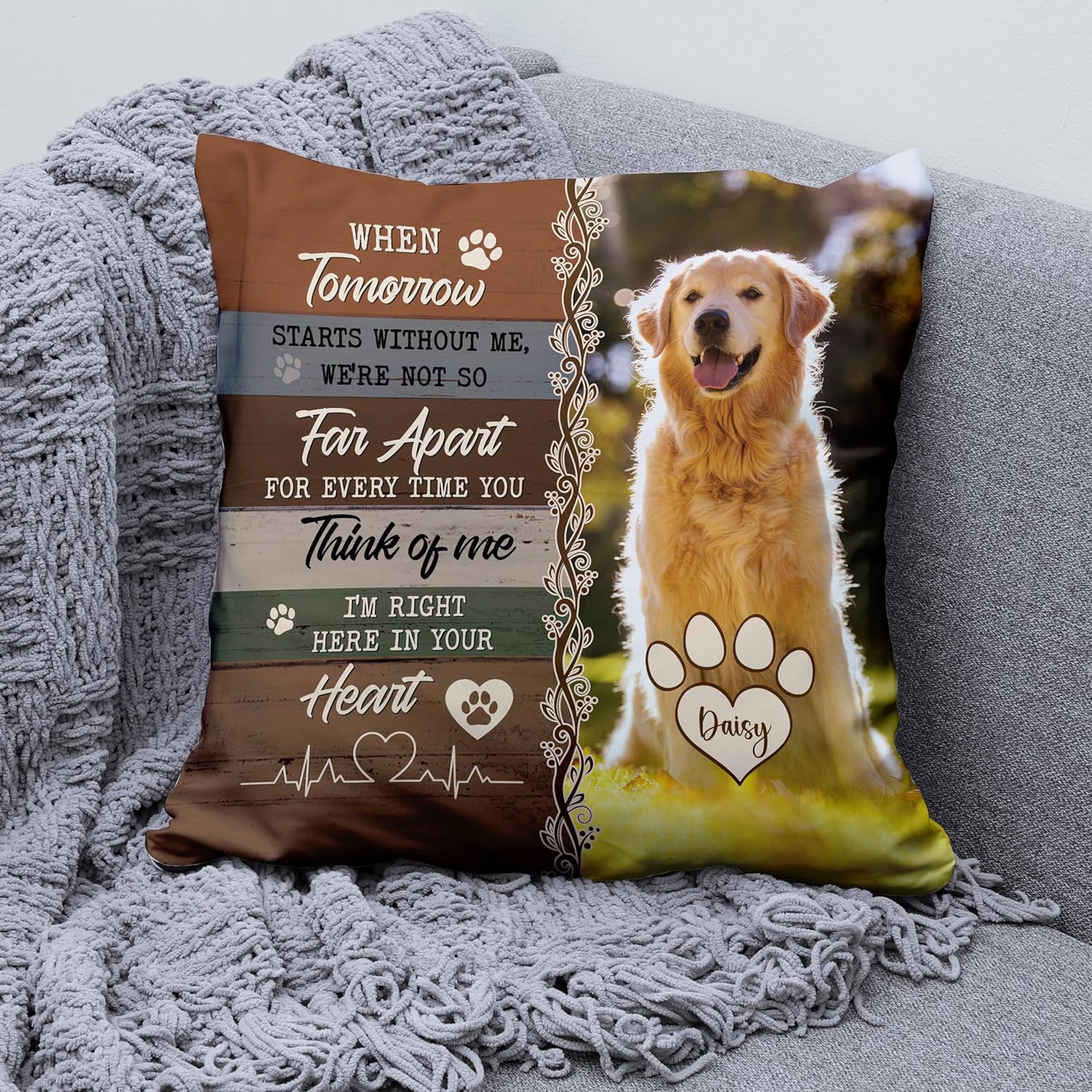 We recently lost our 16 year old yorkie poo and I really wanted something for our camper to memorialize him since we always took him with us. I got this pillow for the couch and it turned out really nice. A little small but still very nice quality.