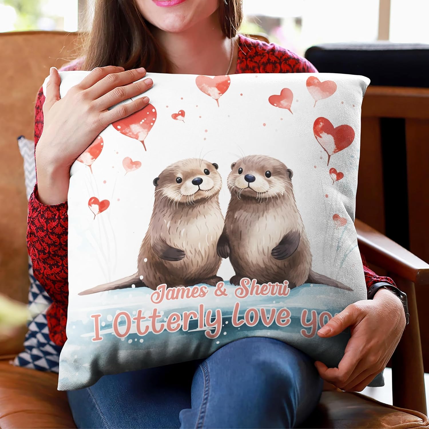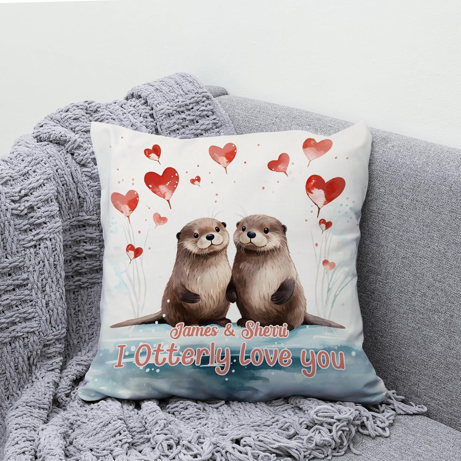 Home Otter Heart Pattern - Personalized Pillow (Insert Included)