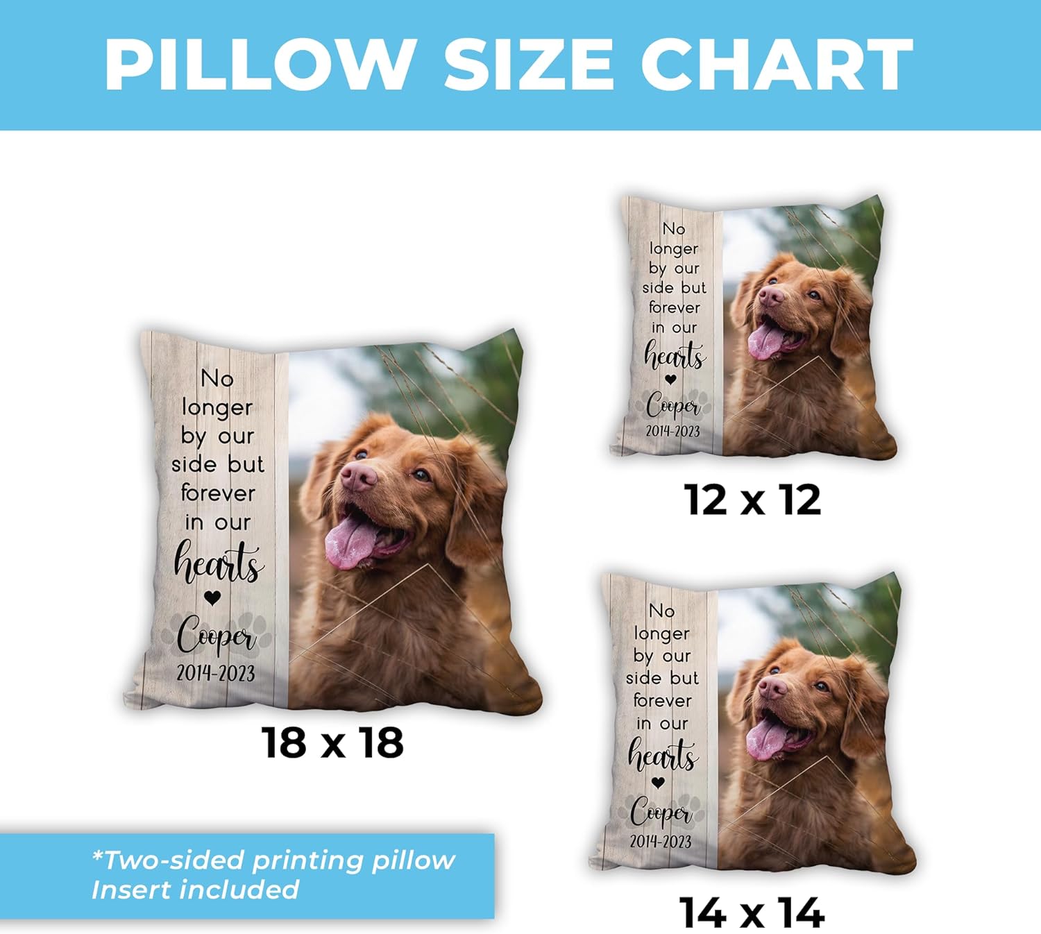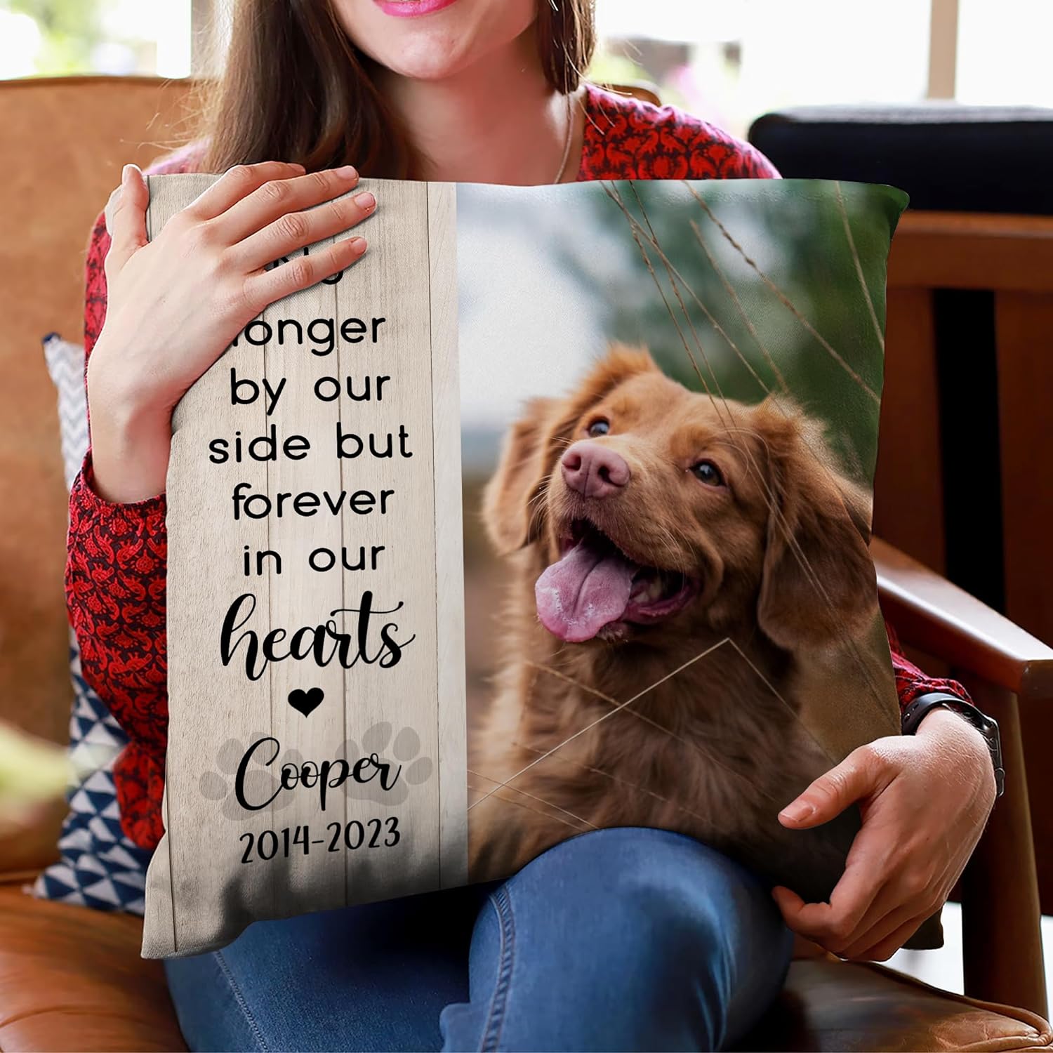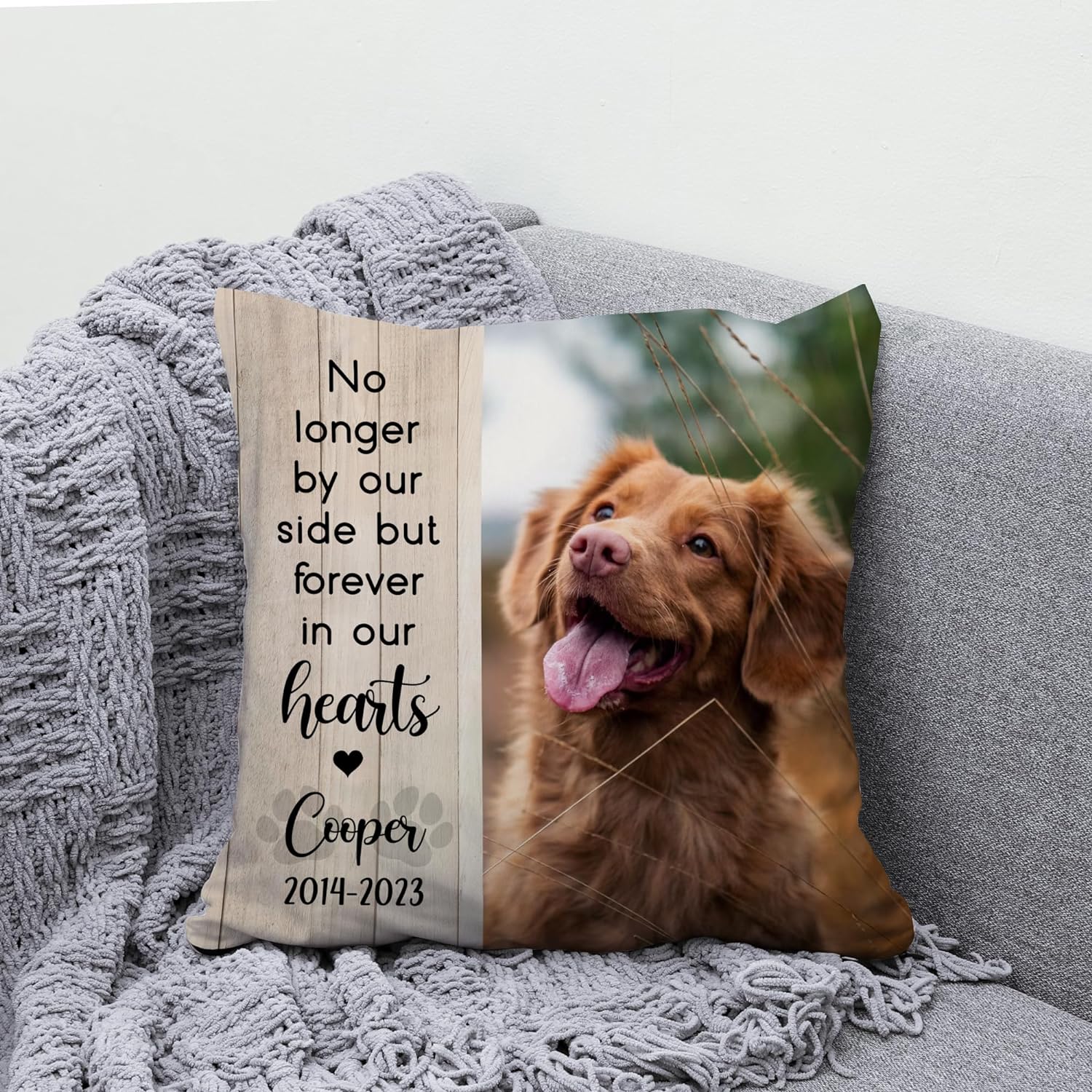 We recently lost our 16 year old yorkie poo and I really wanted something for our camper to memorialize him since we always took him with us. I got this pillow for the couch and it turned out really nice. A little small but still very nice quality.