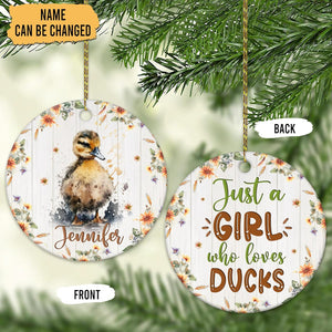 Just a Girl Who Loves Ducks Ceramic Ornament Personalized Double-Sided Glossy Christmas Decoration Keepsake Gift for Duck Lovers