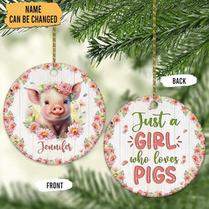 Home Just a Girl Who Loves Pigs Ceramic Ornament – Personalized Double-Sided Glossy Christmas Decoration – Gift Keepsake for Pig Lovers
