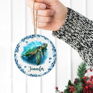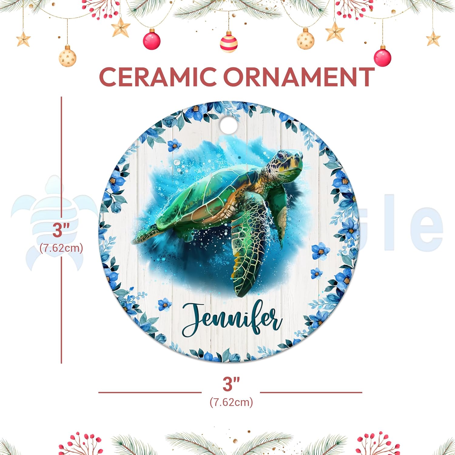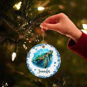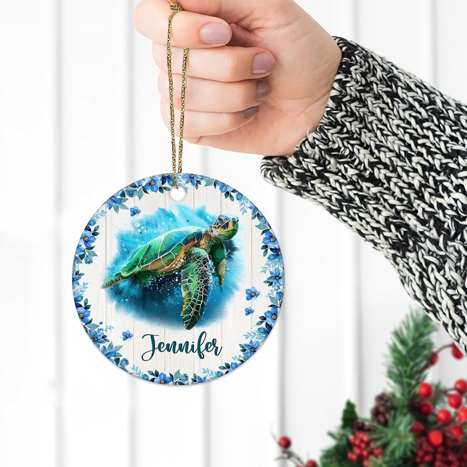 A graceful sea turtle swims through aqua splashes and blue floral borders, paired with playful statement text. Fresh coastal tones make the artwork pop against the light wood-look background. Add a name to celebrate the ocean lover in your life. Crafted from premium ceramic at approximately 3 x 3 inches. The glossy surface brings out color depth and is easy to wipe clean. Double-sided full-color printing keeps the design vibrant on both faces. A gold hanging cord is included for instant display. Ideal for beach-house trees, wreaths, garlands, or nautical centerpieces. Its petite size fits beautifully in apartments and dorm rooms. Durable ceramic construction ensures it returns each holiday with the same sparkle. A meaningful gift for swimmers, divers, and coastal-style fans. Suitable for Christmas, housewarming, or seaside wedding keepsakes. Personalized details make it a lasting reminder of ocean memories. Create your custom turtle decoration now and bring coastal calm to the holidays.