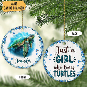 Just a Girl Who Loves Turtles Ceramic Ornament – Personalized Double-Sided Glossy Christmas Decoration – Keepsake Gift for Sea Turtle Lovers