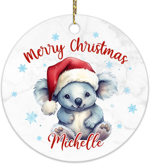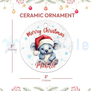 Koala Christmas Ceramic Ornament Personalized Animal Holiday Keepsake Decoration Cute Custom Gift for Women & Kids