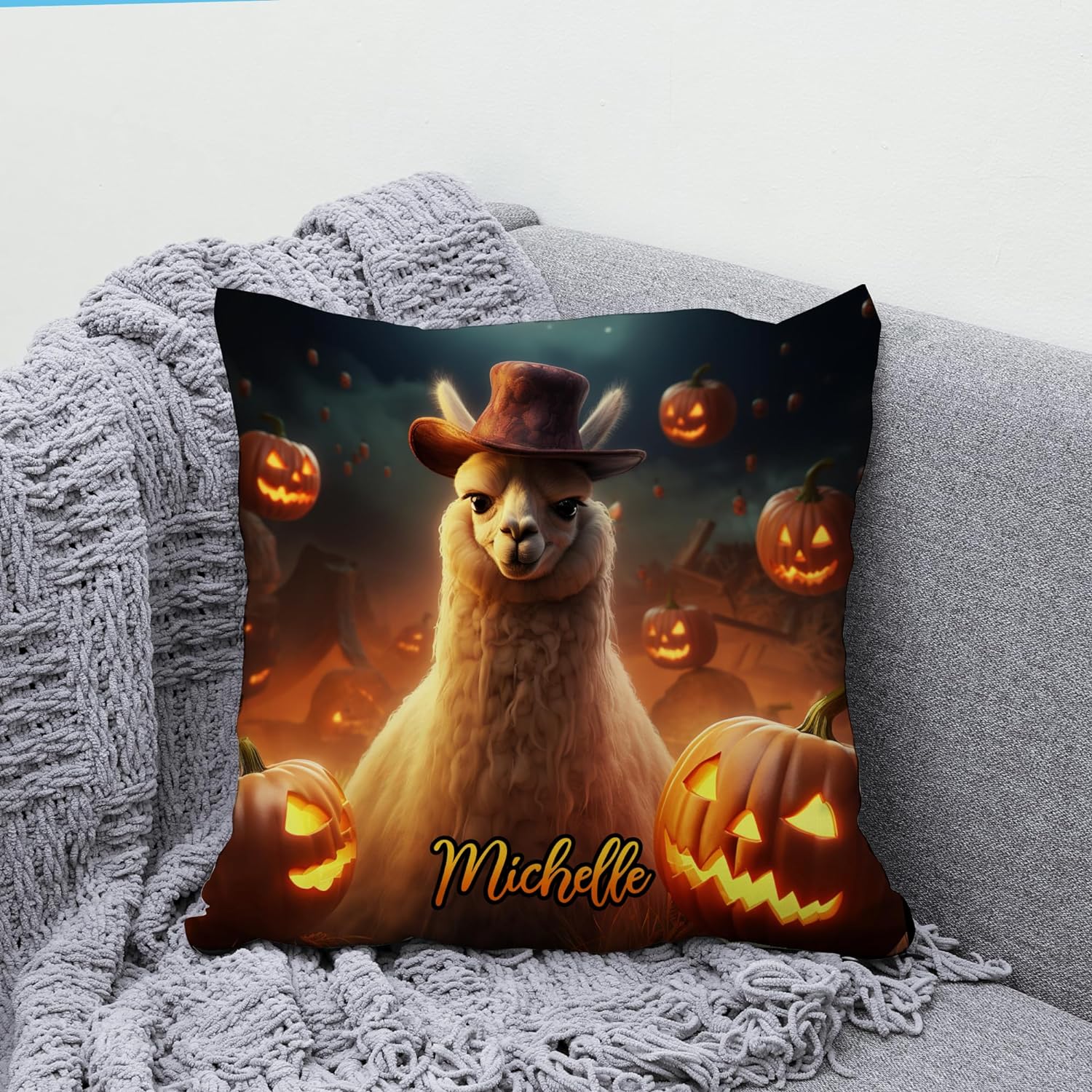 Home Llama Halloween Pattern - Personalized Pillow (Insert Included)