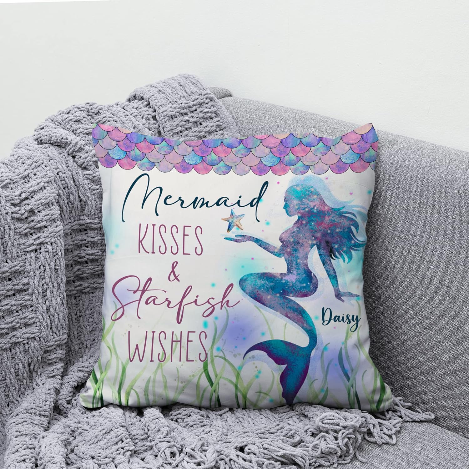 Mermaid Kisses & Starfish Wishes - Personalized Pillow (Insert Included)