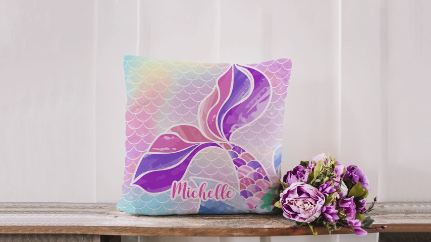 Mermaid Tails Colorfull Pattern - Personalized Pillow (Insert Included)