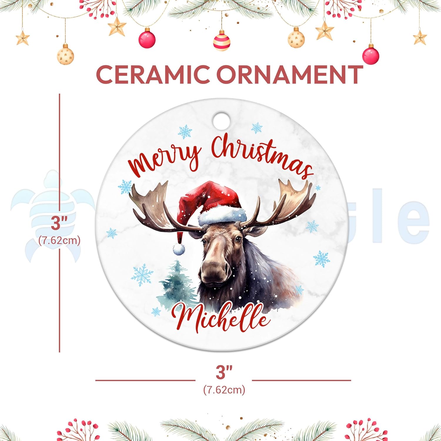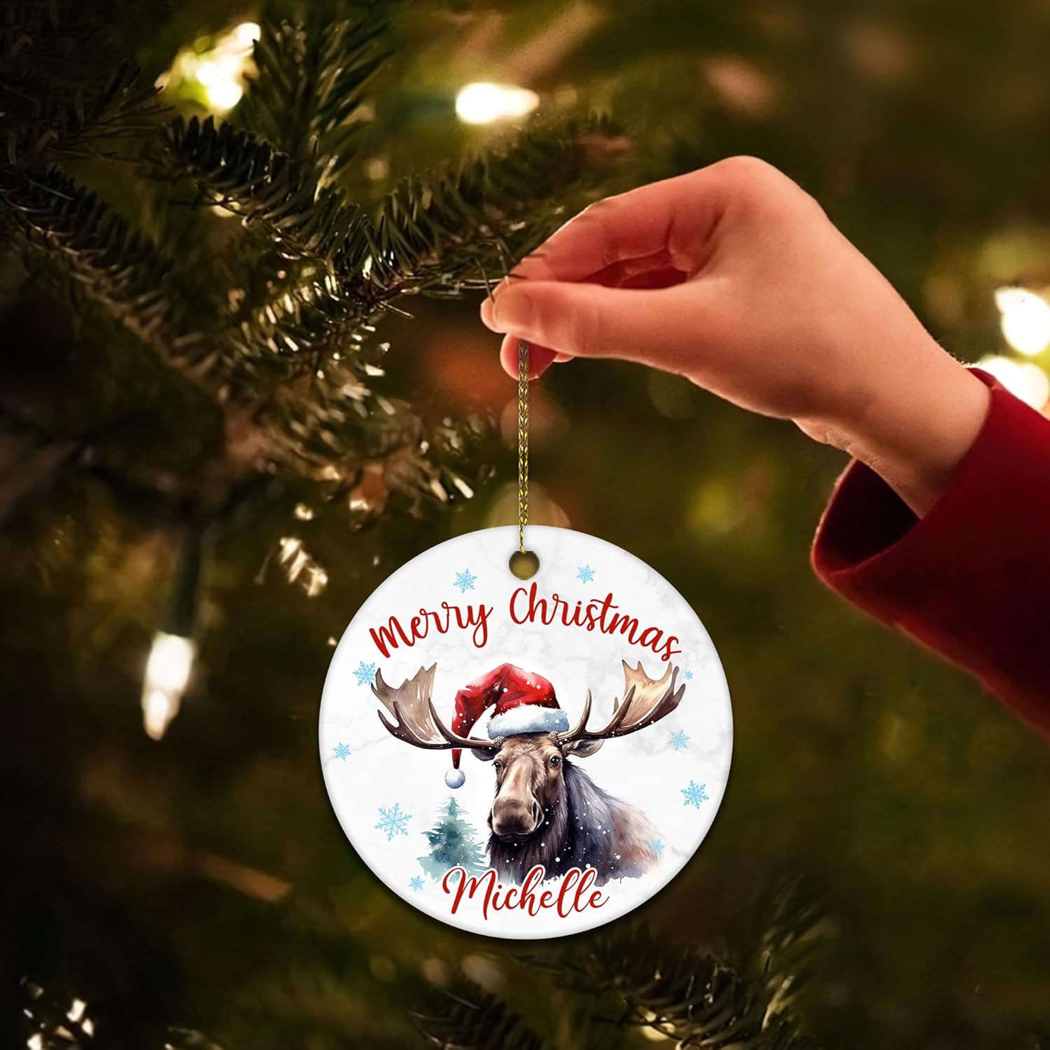MESSAGE: Bring wilderness charm with a personalized moose ornament – festive holiday keepsake for rustic décor and wildlife lovers.