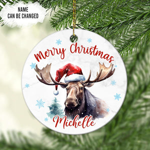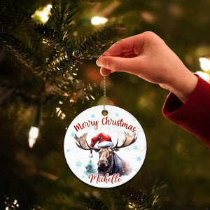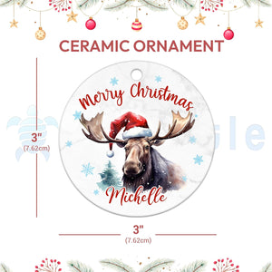 Moose Christmas Ceramic Ornament  Personalized Holiday Keepsake with Custom Name  Rustic Animal Lover Gift