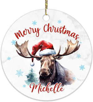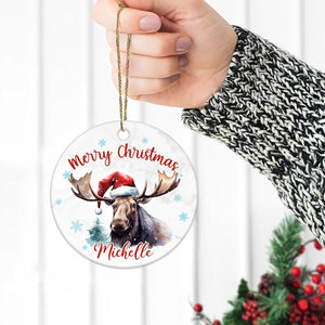 Moose Christmas Ceramic Ornament Personalized Holiday Keepsake with Custom Name Rustic Animal Lover Gift