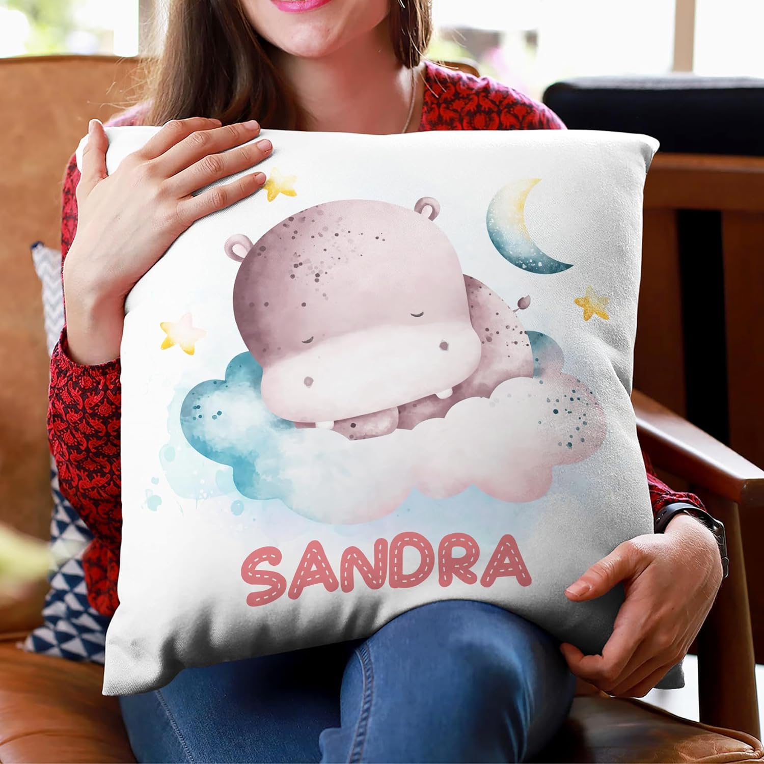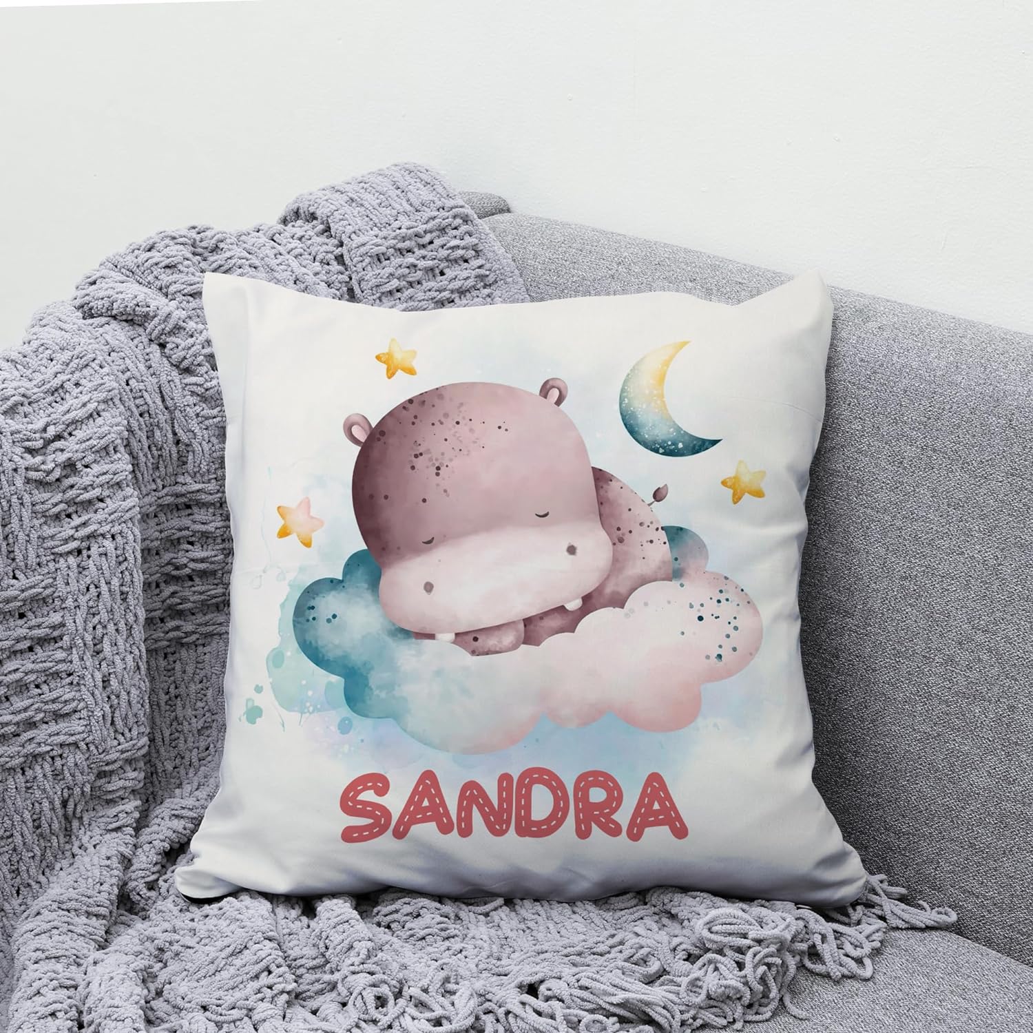 Night Hippo Pattern - Personalized Pillow (Insert Included)