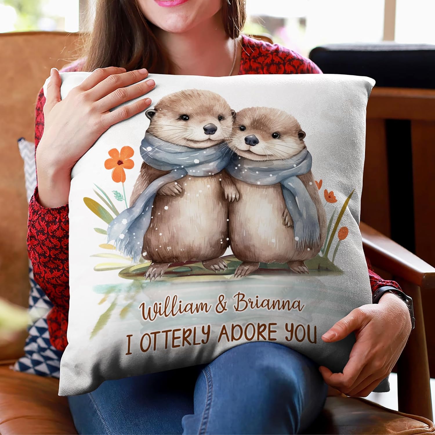Home Otter Floral Winter Pattern - Personalized Pillow (Insert Included)