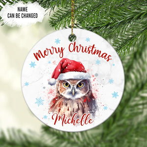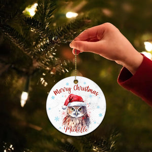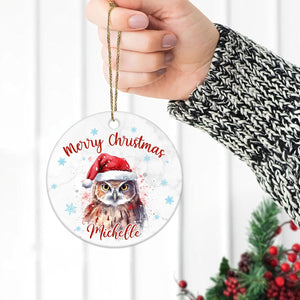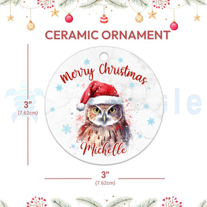 Owl Christmas Ceramic Ornament  Personalized Holiday Decoration with Custom Name  Unique Gift for Animal Lovers
