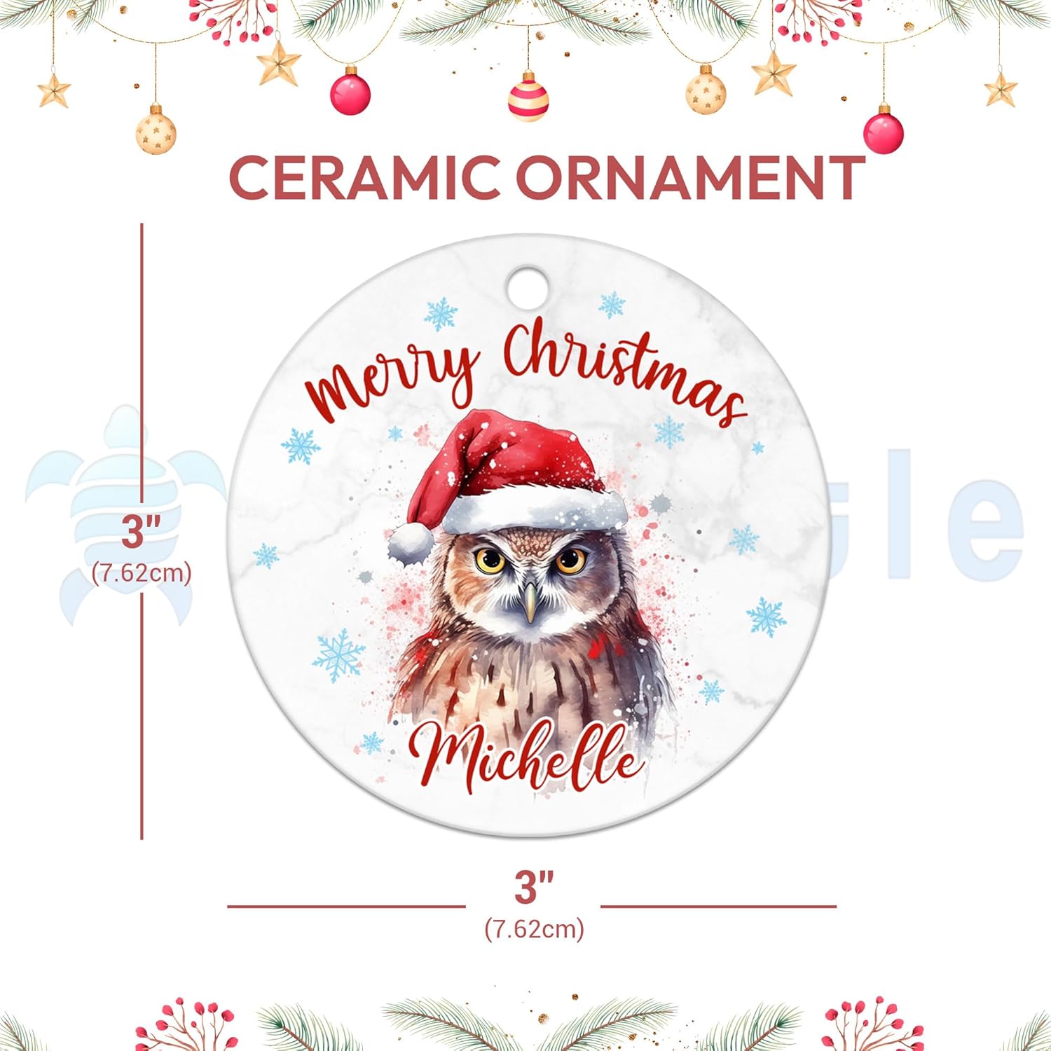 MESSAGE: Add woodland magic to your Christmas with this personalized owl ornament – a festive keepsake for animal lovers.
