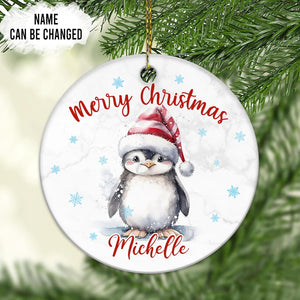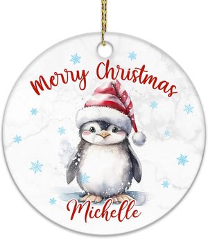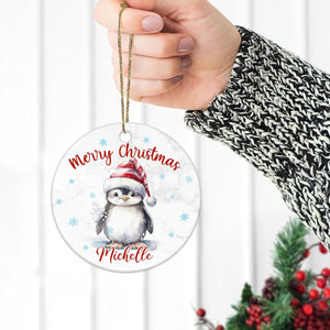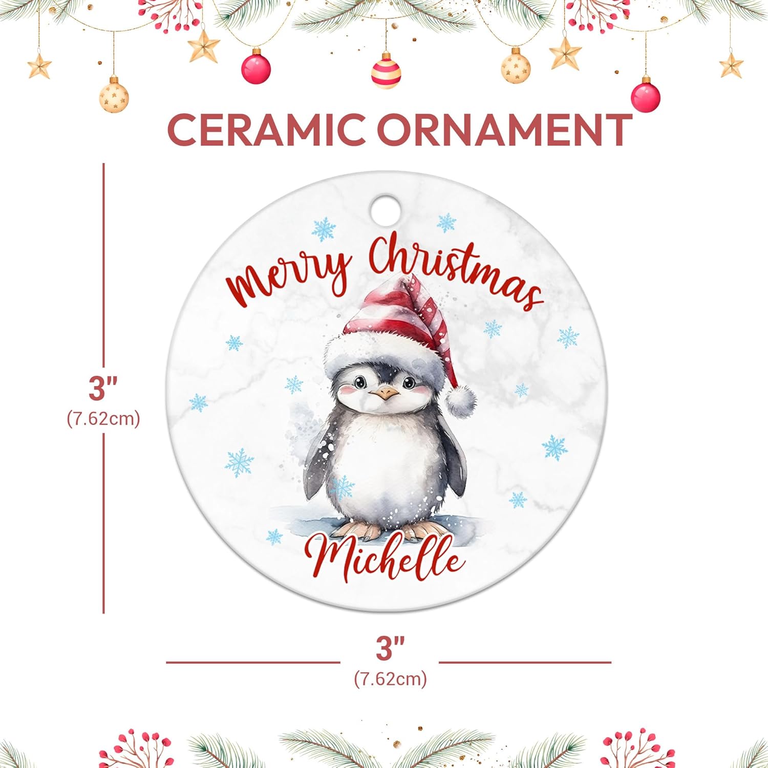 Penguin Christmas Ceramic Ornament Personalized Holiday Keepsake with Custom Name Cute Sea Animal Decoration Gift