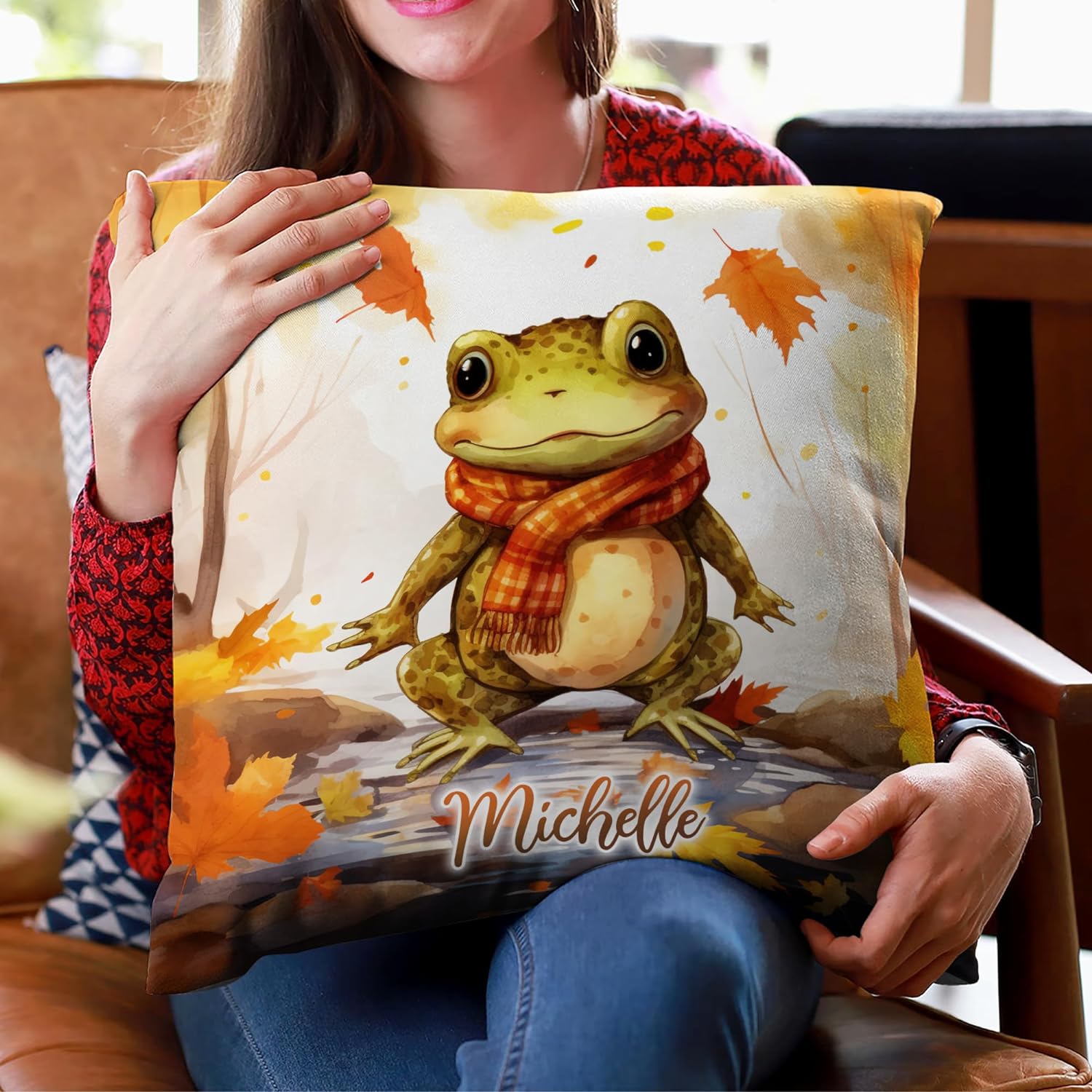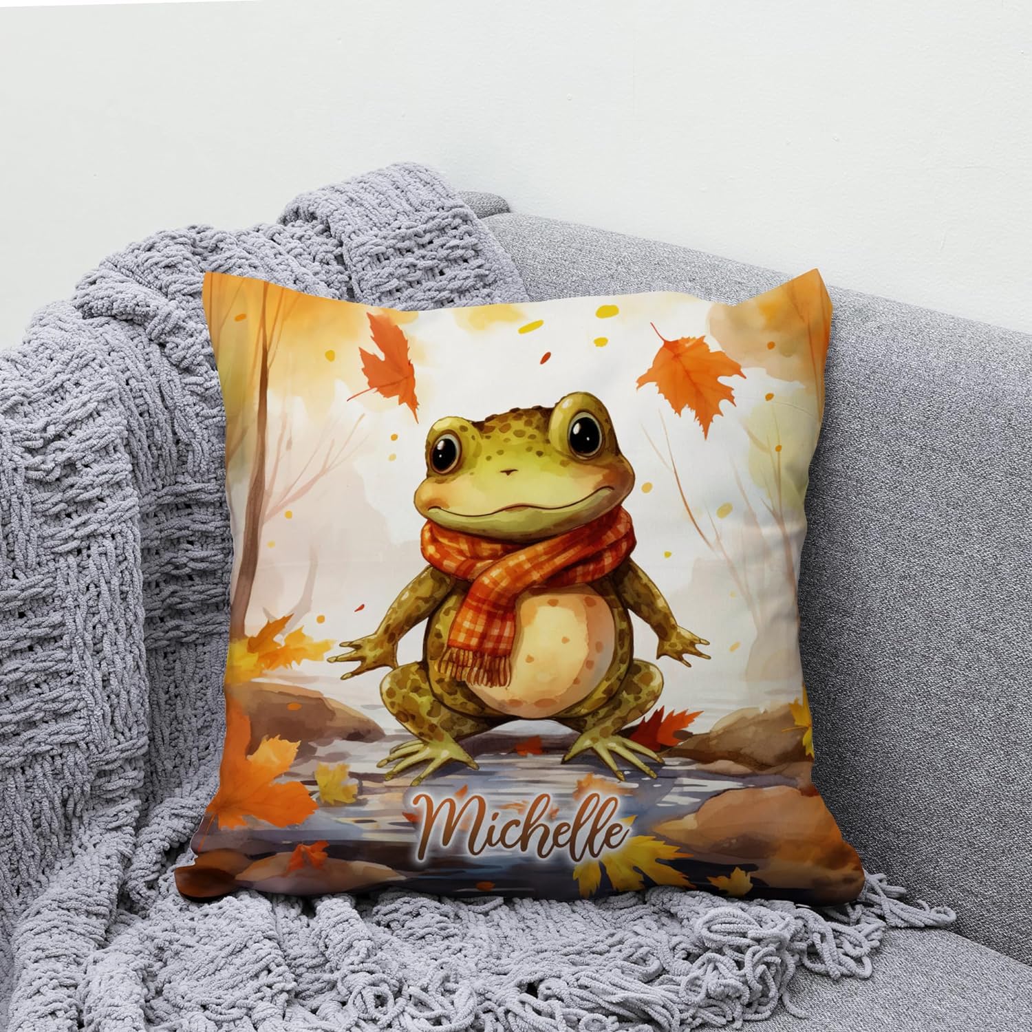 Frog Maple Leaves - Personalized Pillow (Insert Included)